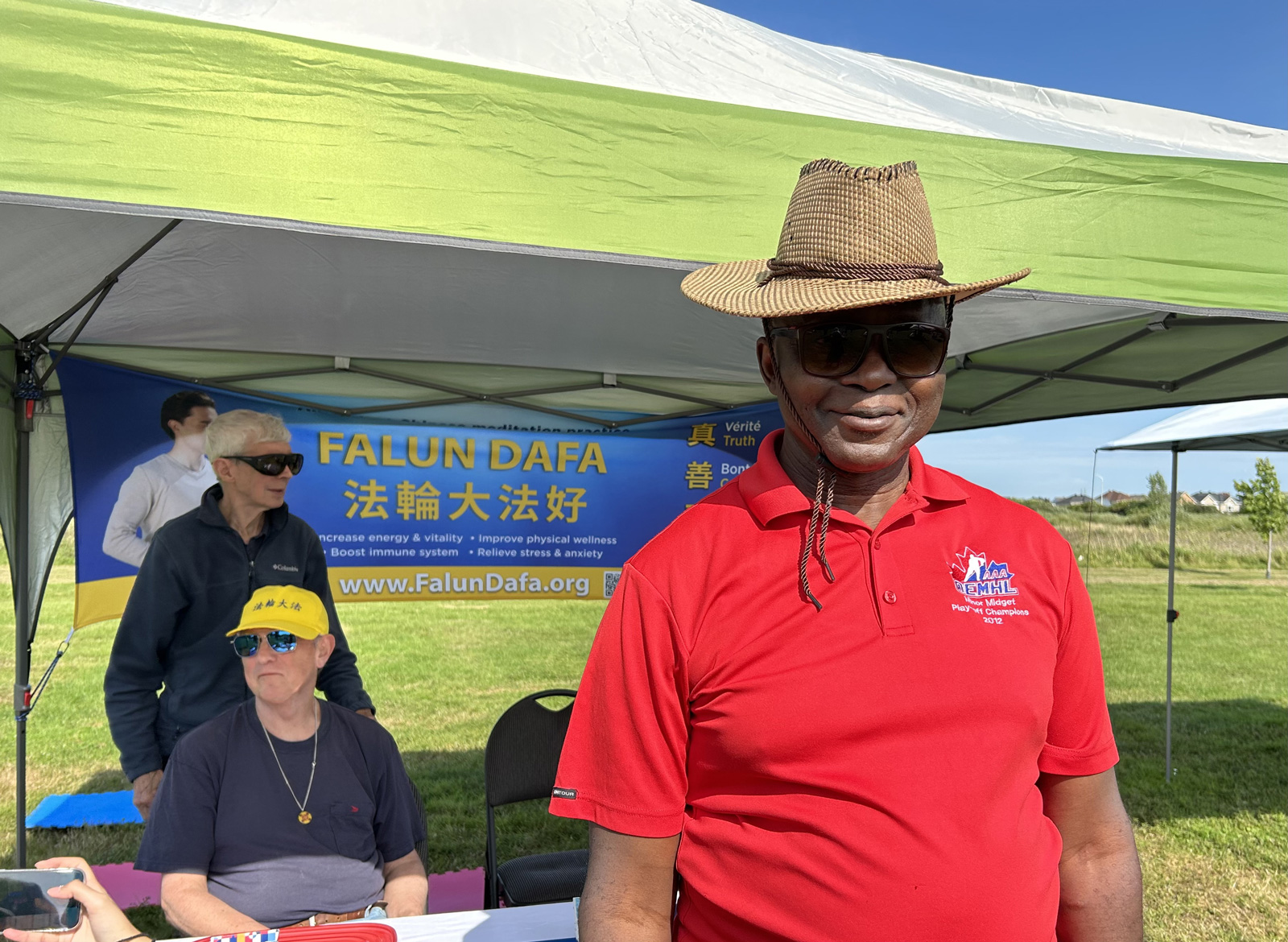 ![]() 图3:非裔冰球协会创办人兼总经理高德拉乌·古阿福森(Godlove Ngwafusi)对法轮功非常感兴趣。 |