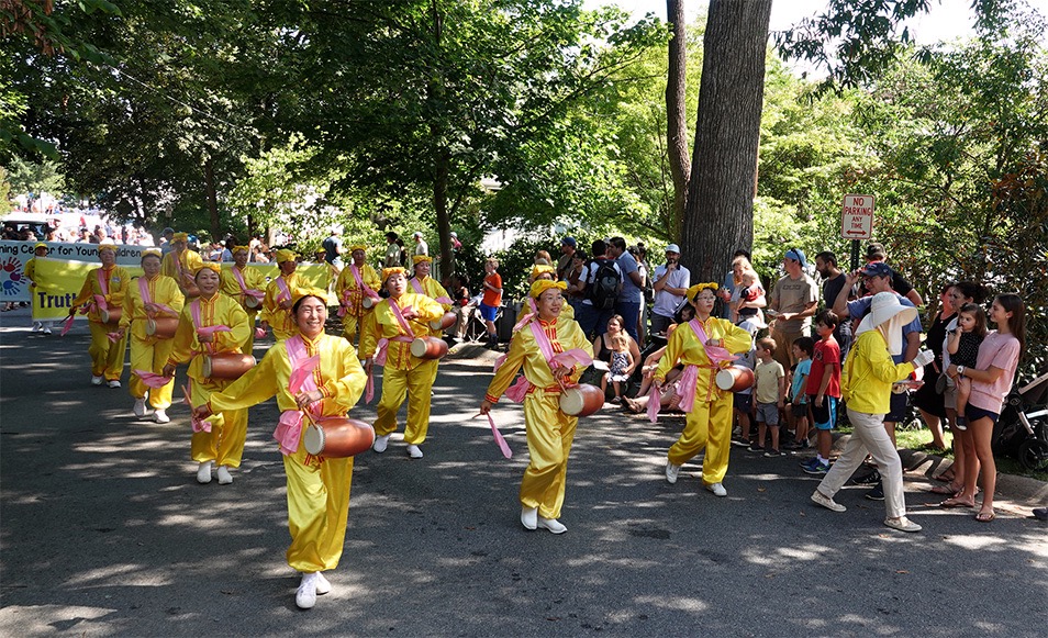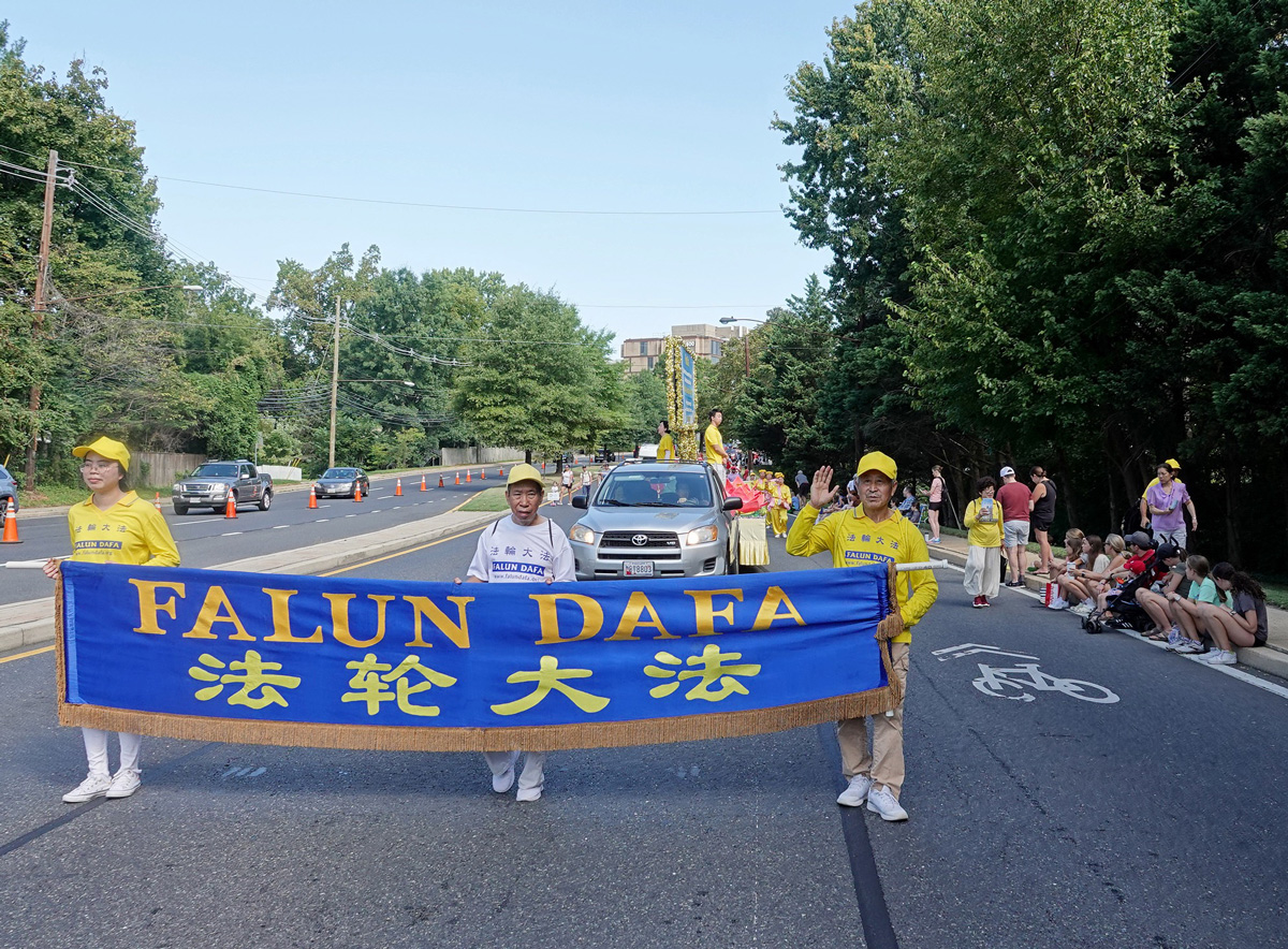 ![]() 图1~2:二零二三年九月四日是美国劳工节,美国大华府地区的部分法轮功学员参加了马里兰州肯辛顿(Kensington,MD)社区游行。 |