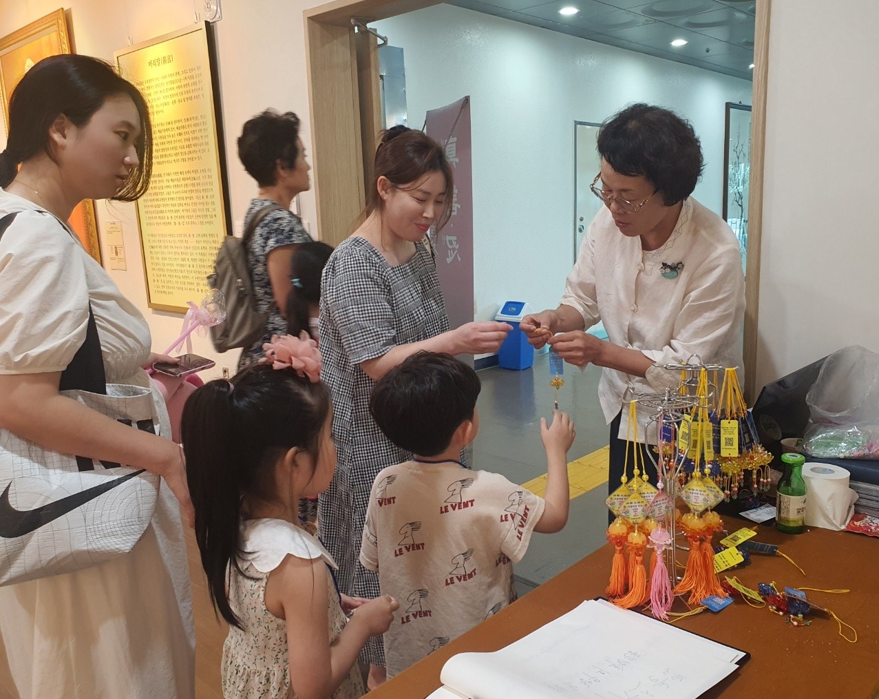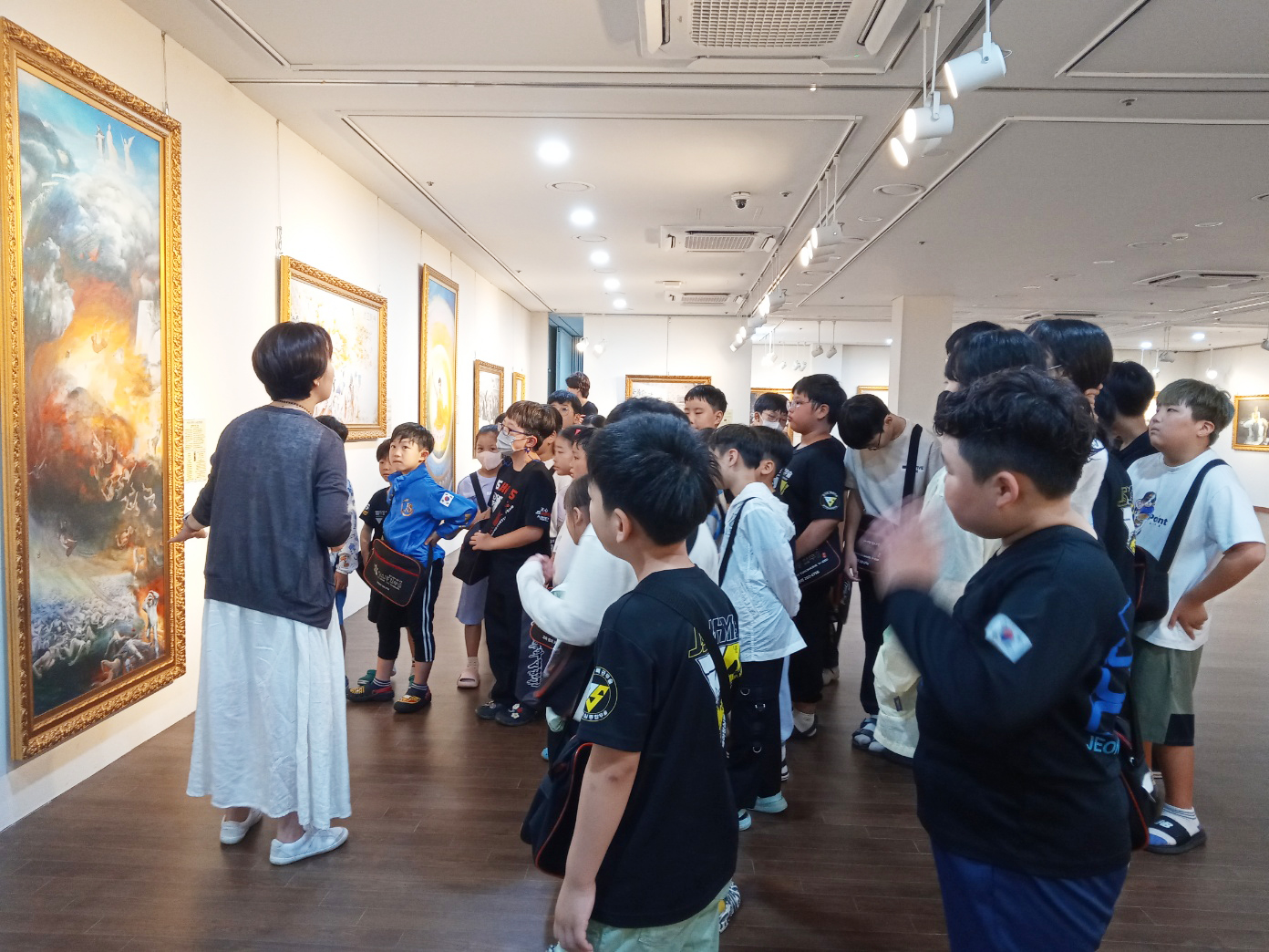 美术展正逢韩国的暑假展出,各种年龄层,不同团体和个人入场观看了美术展。有暑假期间来滑冰的儿童和大人、滑冰社团会员,幼儿园学生、补习班学生及YMCA(基督教青年会)等团体;也有周末来剧场观看儿童剧的小孩和家长以及参加洛东文化院运营的文化教室和文艺讲座的小学生、青少年、大人等,不同年龄层的民众通过观看美术展了解了法轮功被迫害的真相。
