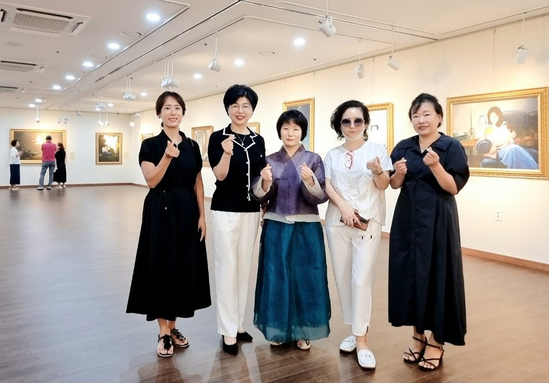 在此次举办的美术展上,全球首个只由女性组成的韩日狮子会的会长及会员们参观了展览。她们表示:“虽然听说过法轮功,但不知道现在中国正在发生活体摘取(法轮功修炼者的)器官这样可怕的事情。”