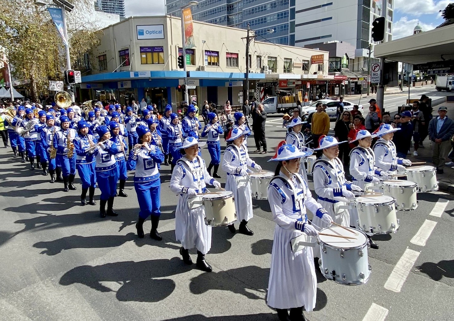![]() 图1~3:二零二三年九月二日,由法轮功学员组成的天国乐团应邀参加了街博会的大型游行,受到当地民众的喜爱。 |
