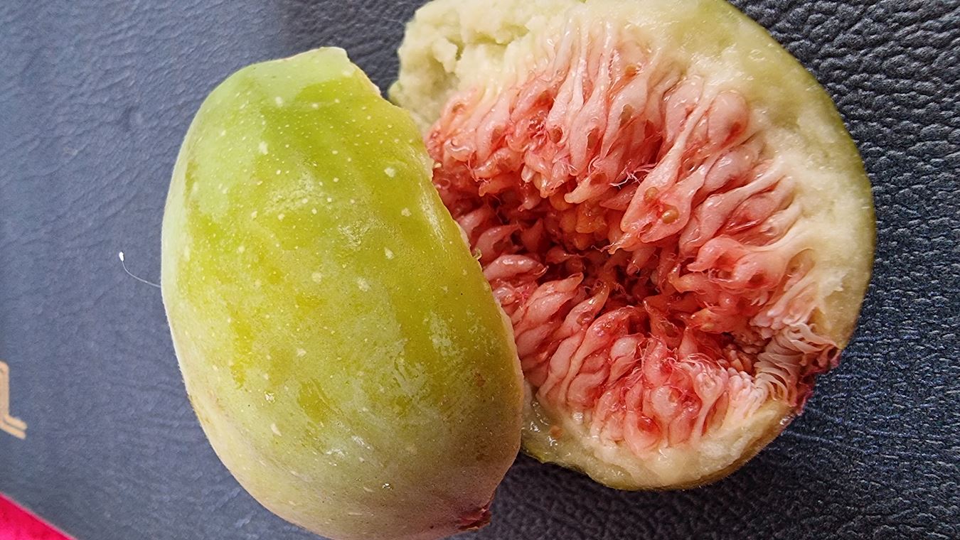 送家人到了车站,回来家里,我随手拿起盘子里的无花果,掰开就准备吃。快到嘴边时,我一下就看到无花果上有一颗优昙婆罗花。哇,我激动的差点跳起来,太神奇了,我叫来丈夫,丈夫也很惊奇,就赶紧拿出手机来拍照,然后把照片发给家人看。他们刚到车站,然后,我们视频给他们看,大家非常激动。我说,这是你们亲手摘的果子,是师父鼓励你们,回去一定要多看书。他们开心的像孩子。