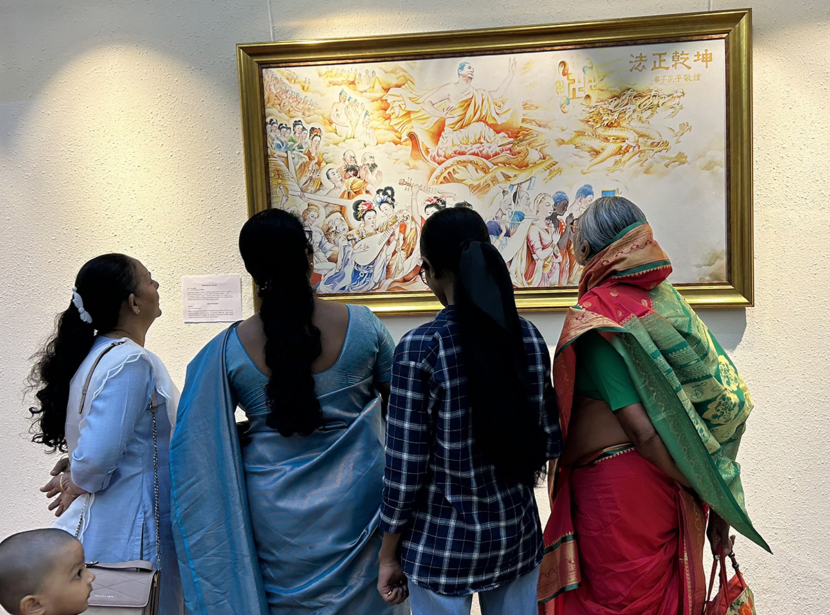 什韦塔·坦布恩·马特于二零一九年荣获印度环球夫人的荣誉,她带着儿子参观了画展。她对画作非常欣赏,尤其是其中一幅名为《转大法轮》的画,描绘了李洪志大师在华盛顿DC讲法时会场出现的奇妙景象。
