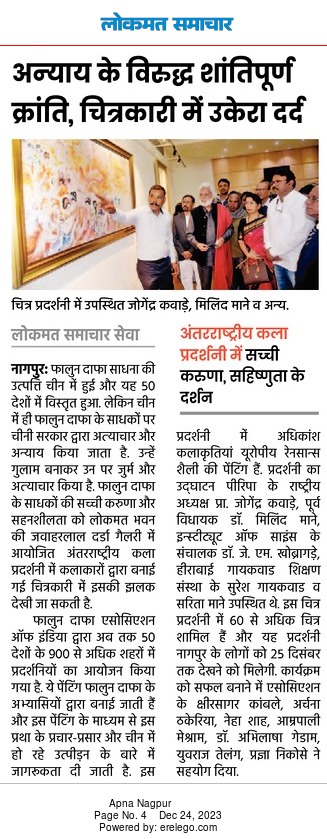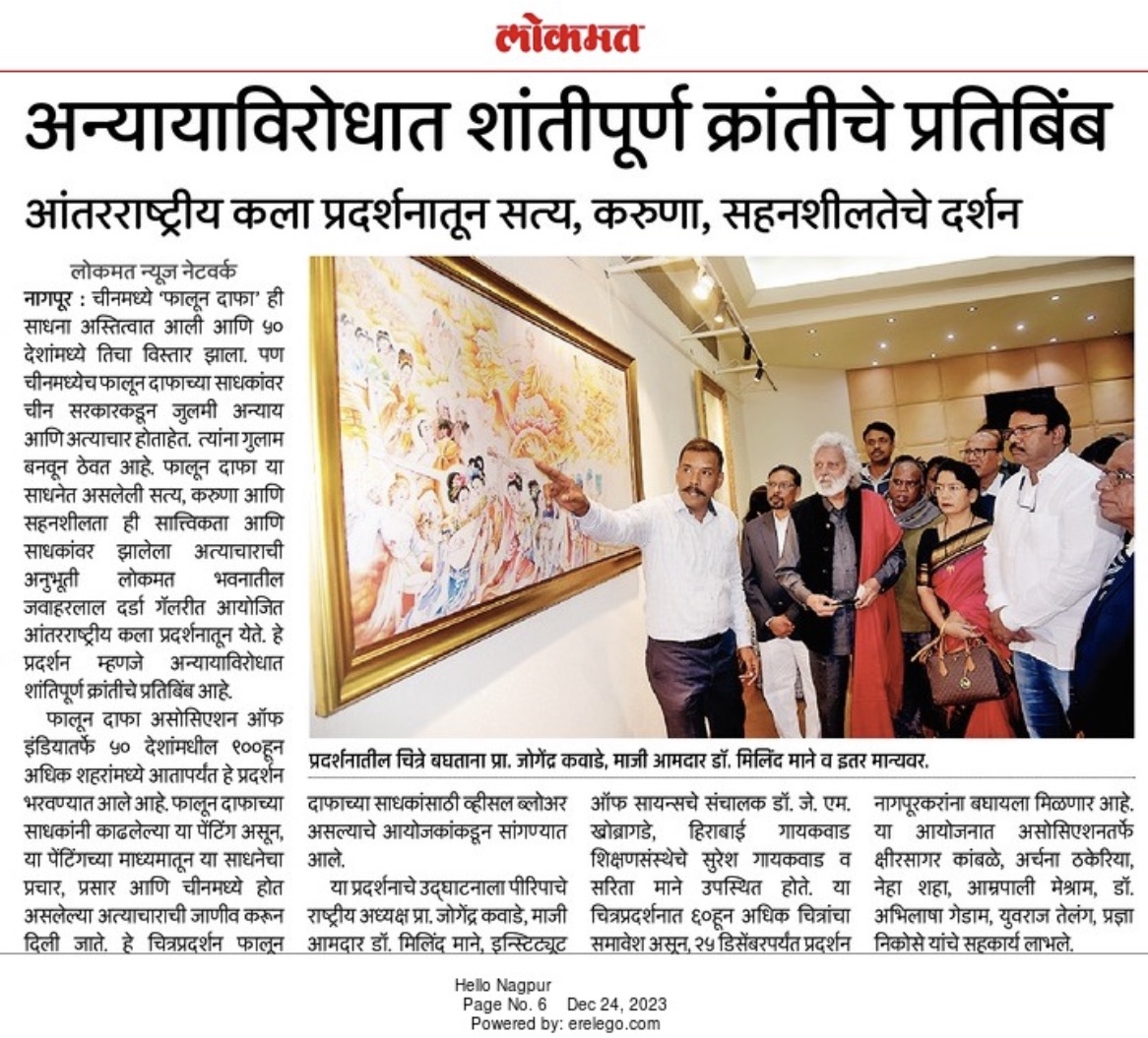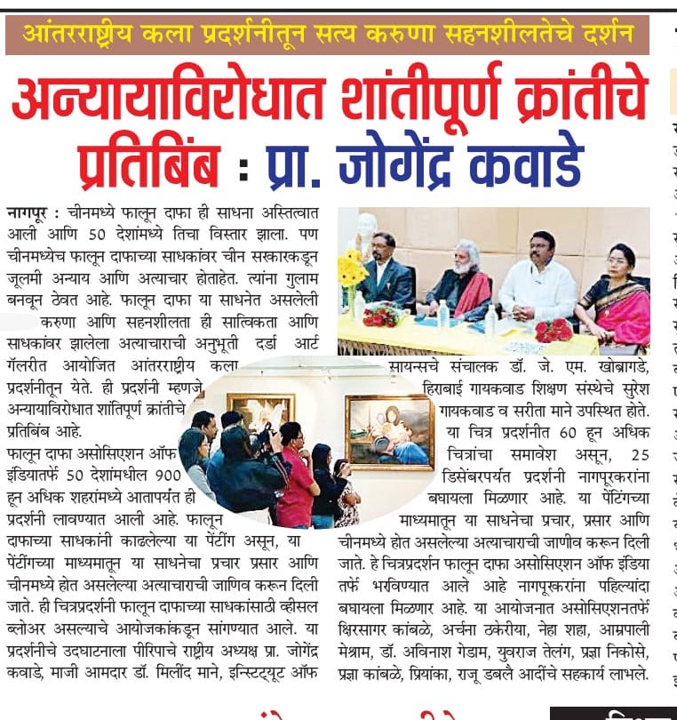 十二月二十三日,多位政界、教育界、科学界嘉宾参加了“真善忍国际美展”的开幕式,其中包括:前议会议员约根德拉·卡瓦德(Jogendra Kawade)、马哈拉施特拉邦立法议会前议员米林德·马内(Milind Mane)博士、那格浦尔科学研究所所长J·M·科布拉加德(J.M. Khobragade)及希拉拜·盖克瓦德教育学院(Hirabai Gaikwad Education Institute)创始人苏雷什·盖克瓦德(Suresh Gaikwad)。