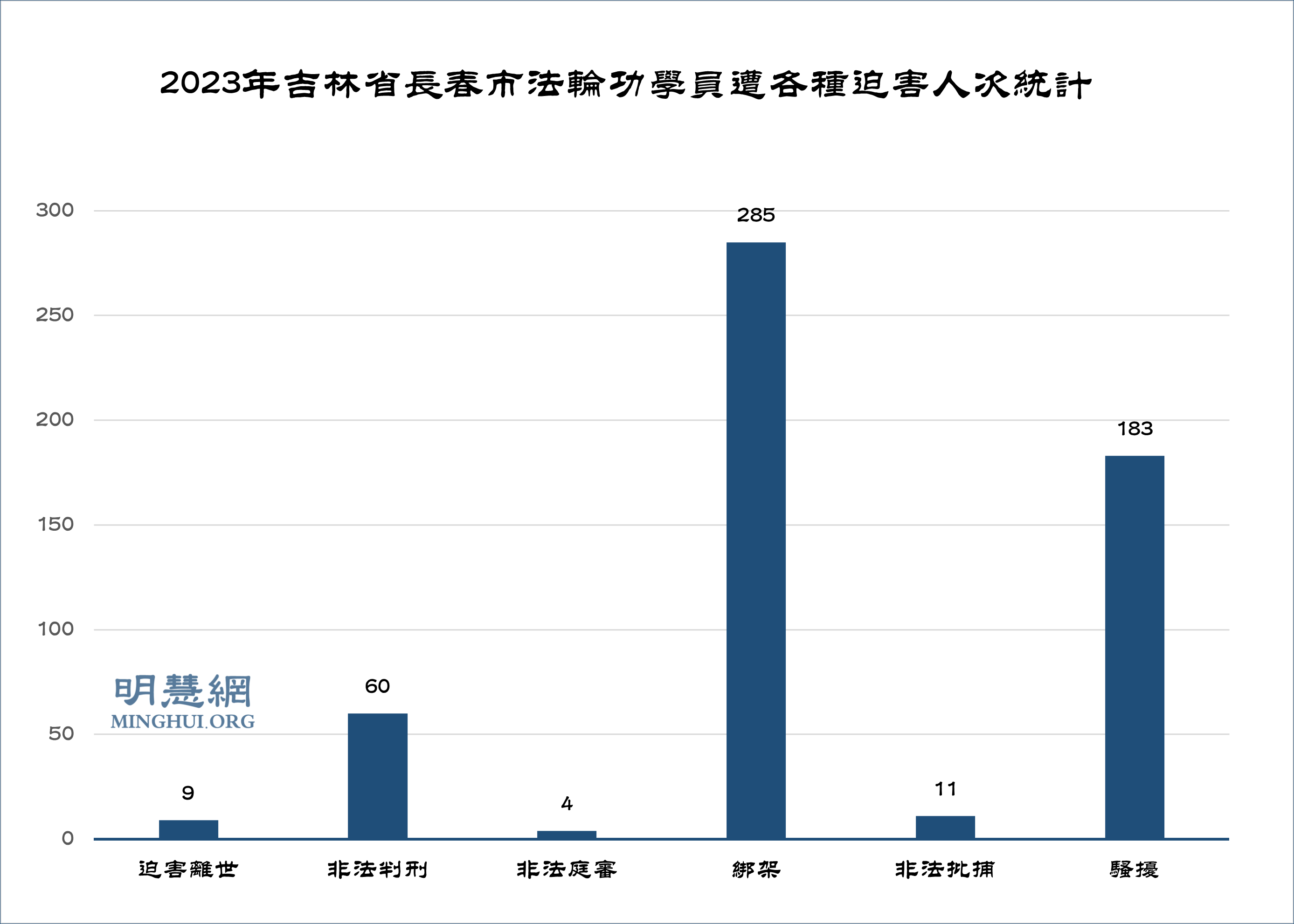 ![]() 图:2023年吉林省长春市法轮功学员遭各种迫害人次统计 |