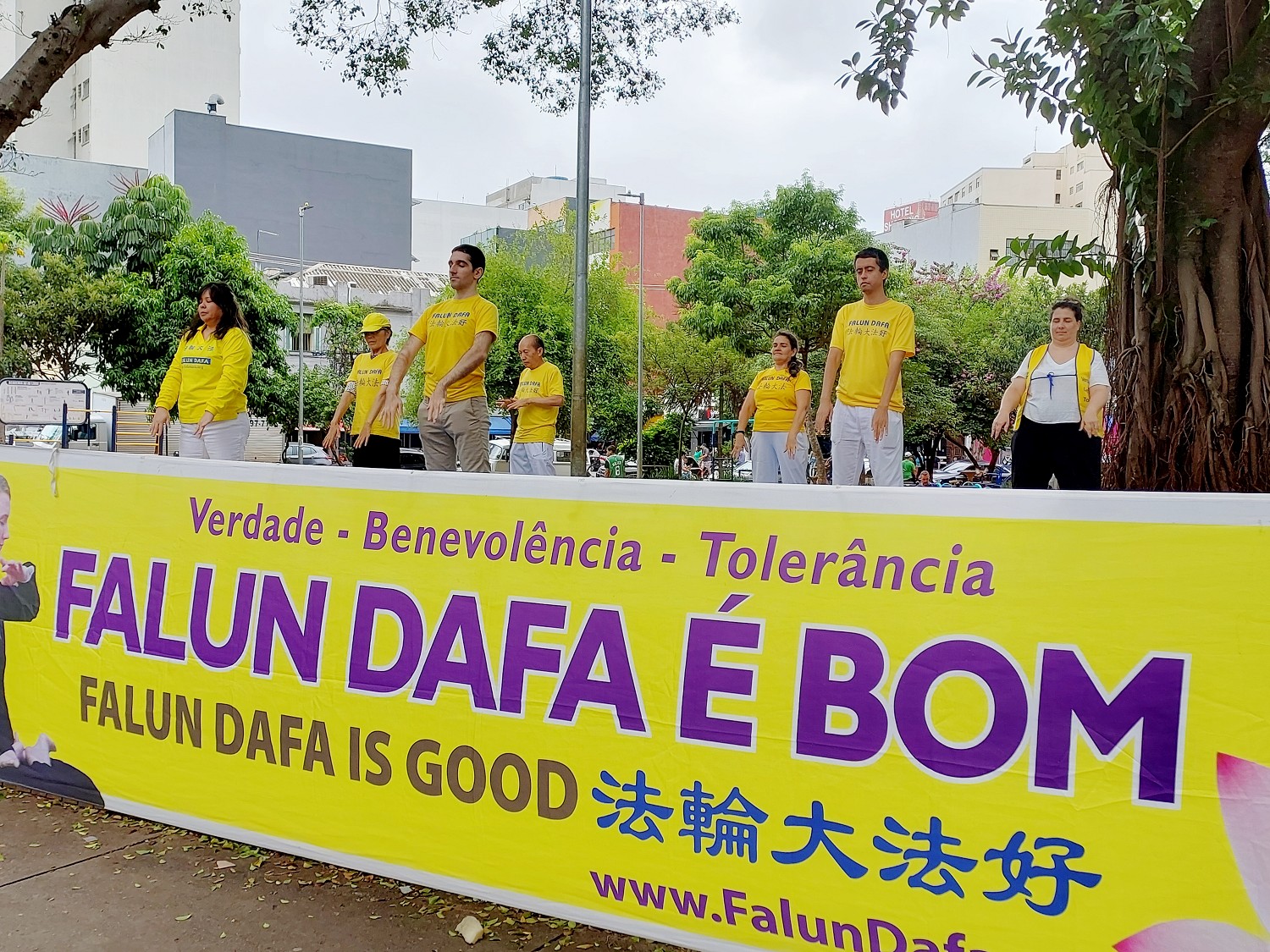 在一个华人商铺里,有位巴西店员疑惑的问学员是不是炼这个功会使人发疯,因为中国老板是这么说的。学员耐心跟她解释:“法轮大法已经弘传世界一百多个国家,修身养性、祛病健身有奇效,唯独在中国是被禁止的。在一九九九年以前,在中国就有上亿人修炼法轮功。”
