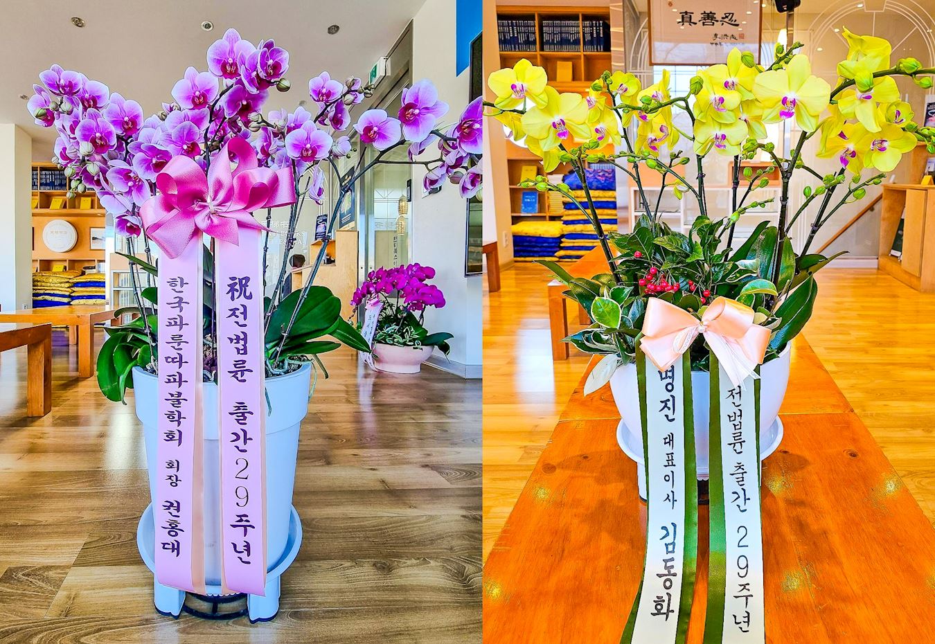 ![]() 图4~6:纪念《转法轮》出版二十九周年,各界送来了庆祝花环祝贺。 |