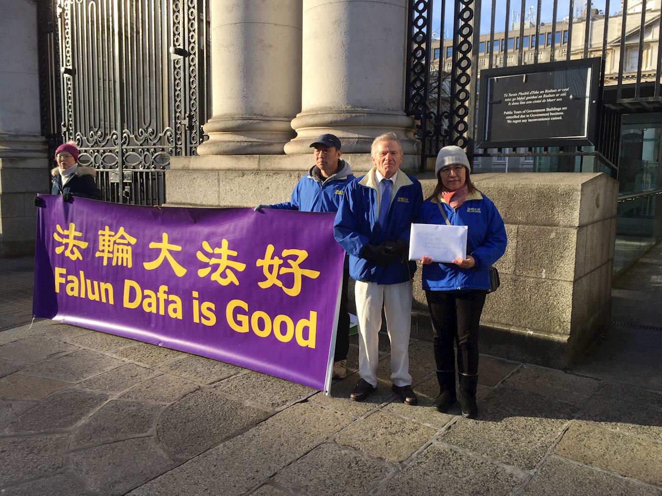 ![]() 图1:爱尔兰法轮功学员在总理府递交请愿信 |
