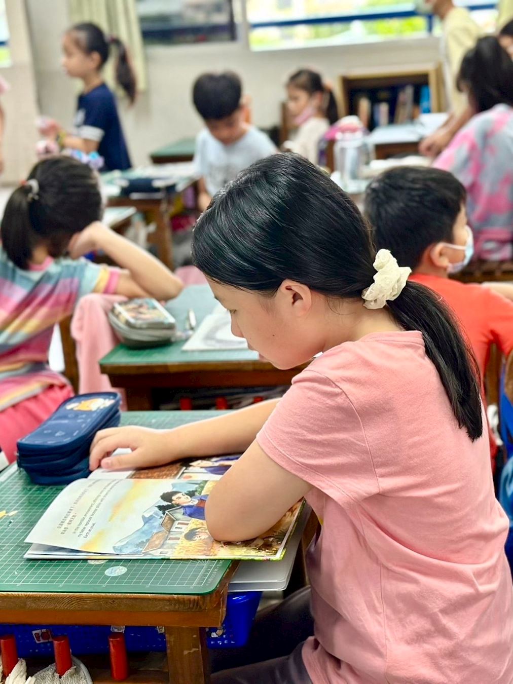 ![]() 图5:小崴阅读明慧儿童绘本《我的新同学》 |