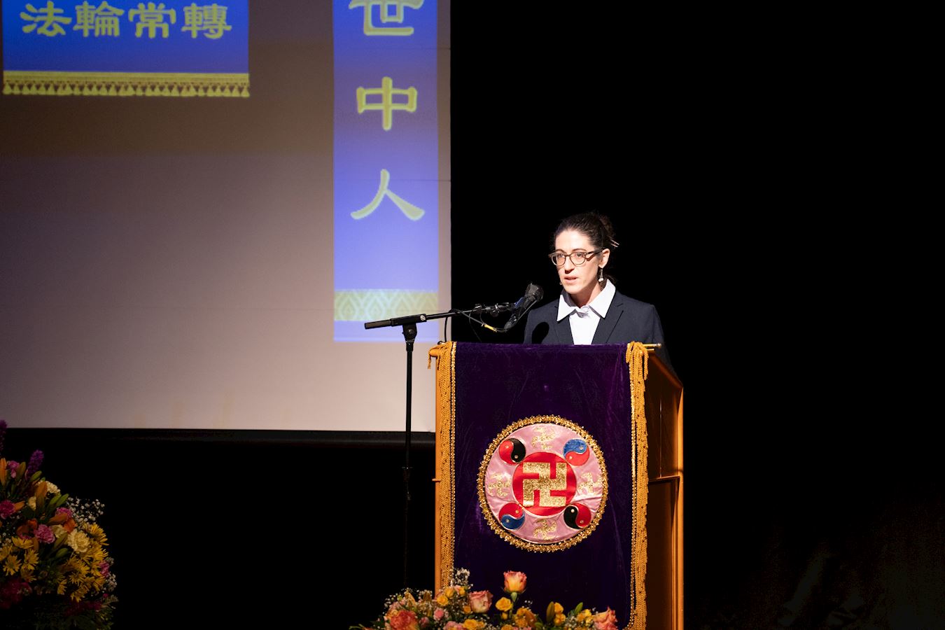 安妮(Anne)在大学当护士,在发言中她分享了自己对实修的体悟,如何在疫情期间在极短的时间内帮助入学的学生们找到最合适的保健计划并完成疫苗规定。安妮讲述了自己的修炼经历和感悟,感恩师尊的教导。