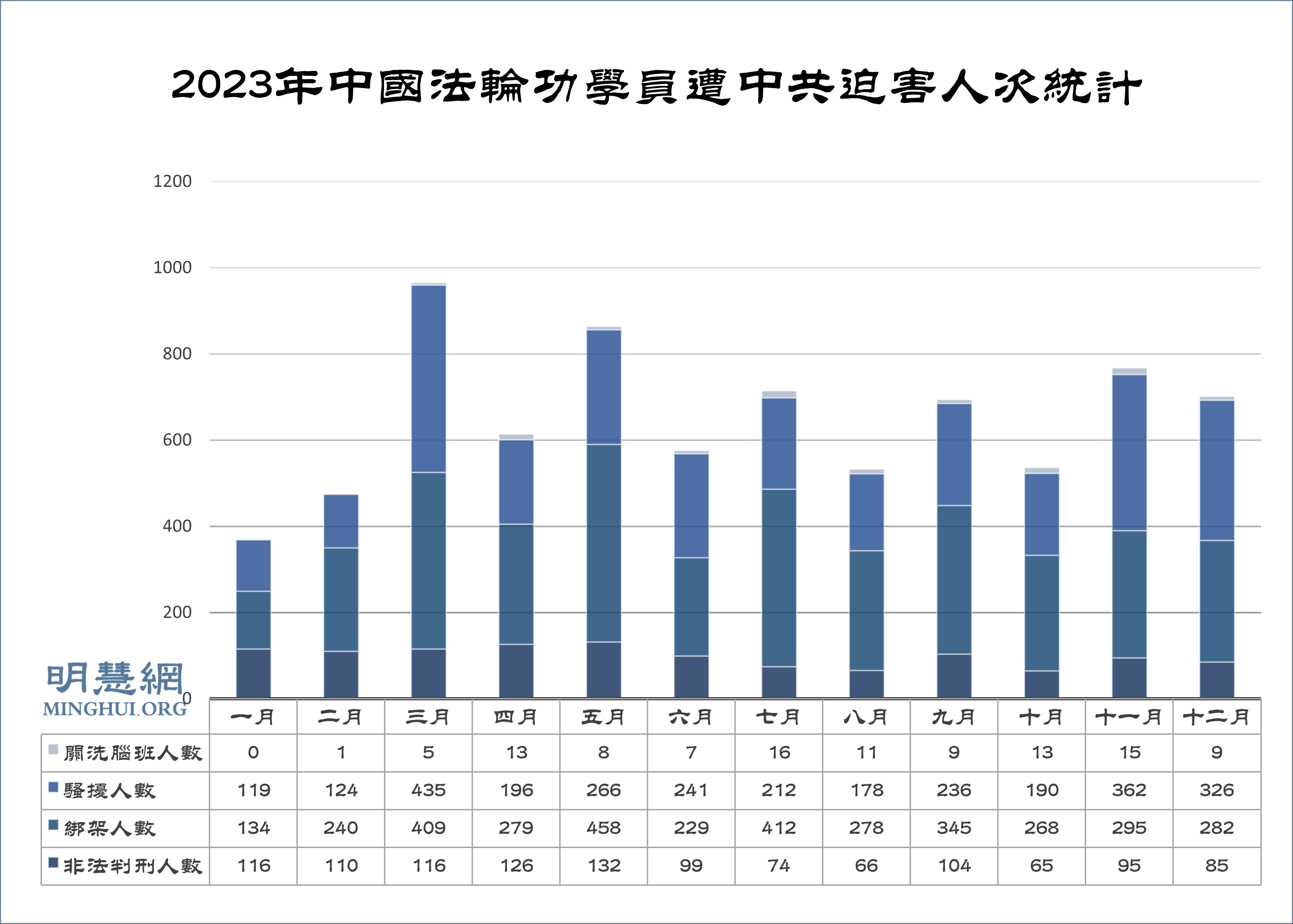 图2:2023年中国法轮功学员遭中共迫害人次统计