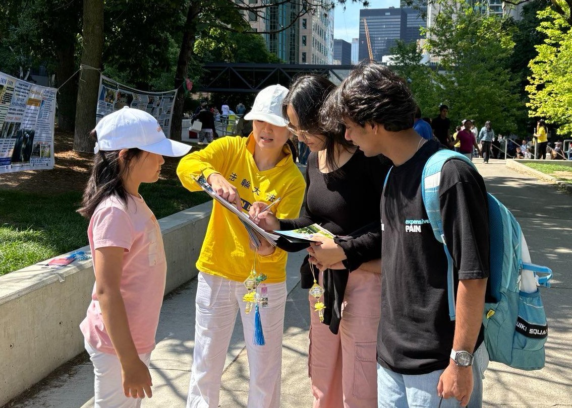布雷坦尼亚(Britannia)是一名学生,在路过码头公园时,法轮功学员走上前向她们介绍大法的基本信息,以及大陆学员被迫害的情况。听完真相后,布雷坦尼亚和母亲一起在征签名信片上签名呼吁停止迫害。