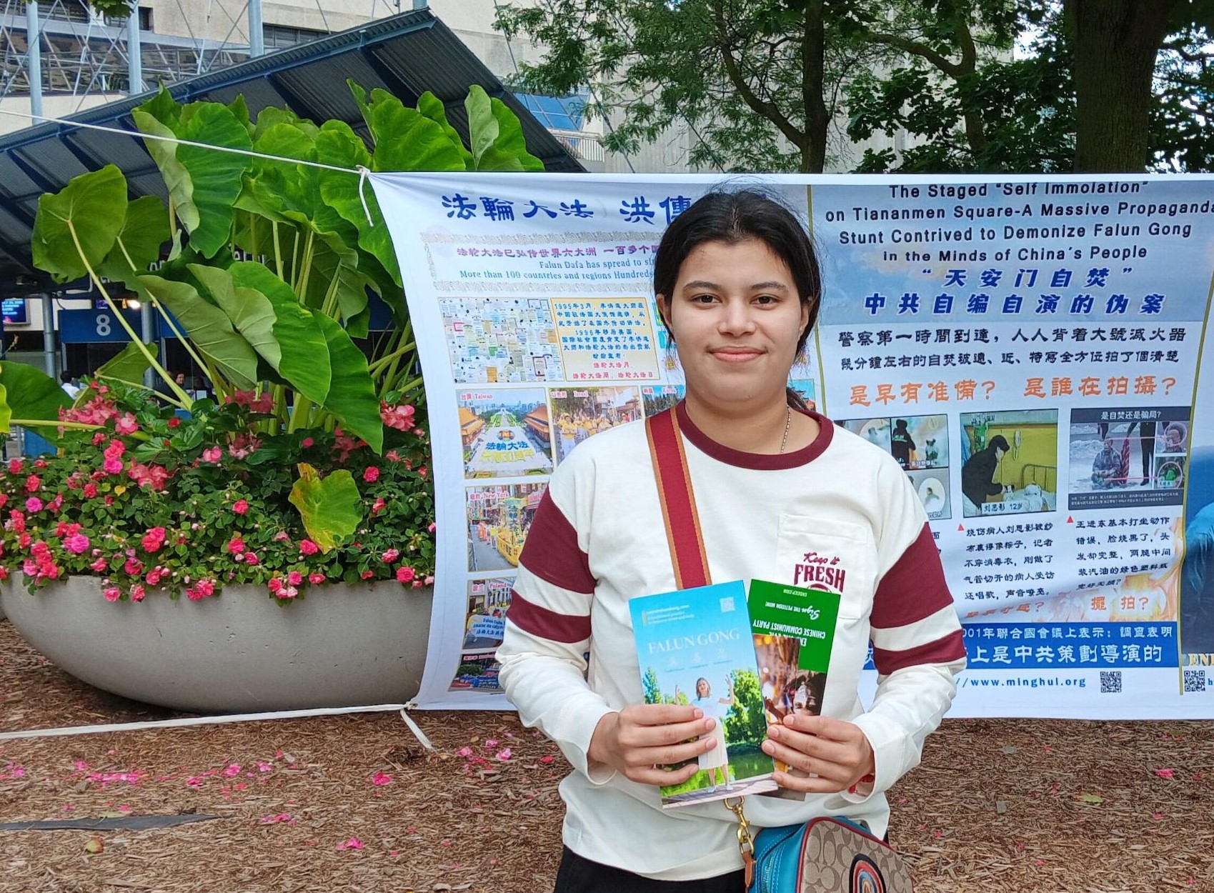 布雷坦尼亚回忆,不久前曾在公园跟法轮功学员一起炼过功,她说:“(炼功)是一个很棒的体验,我感受到了平和。感觉这是我一直在寻找的东西。”她还表示,自己刚来加拿大,还没有广泛的社交圈,学员们的言行让她有归属感,“就象是告诉我:‘欢迎加入’。”