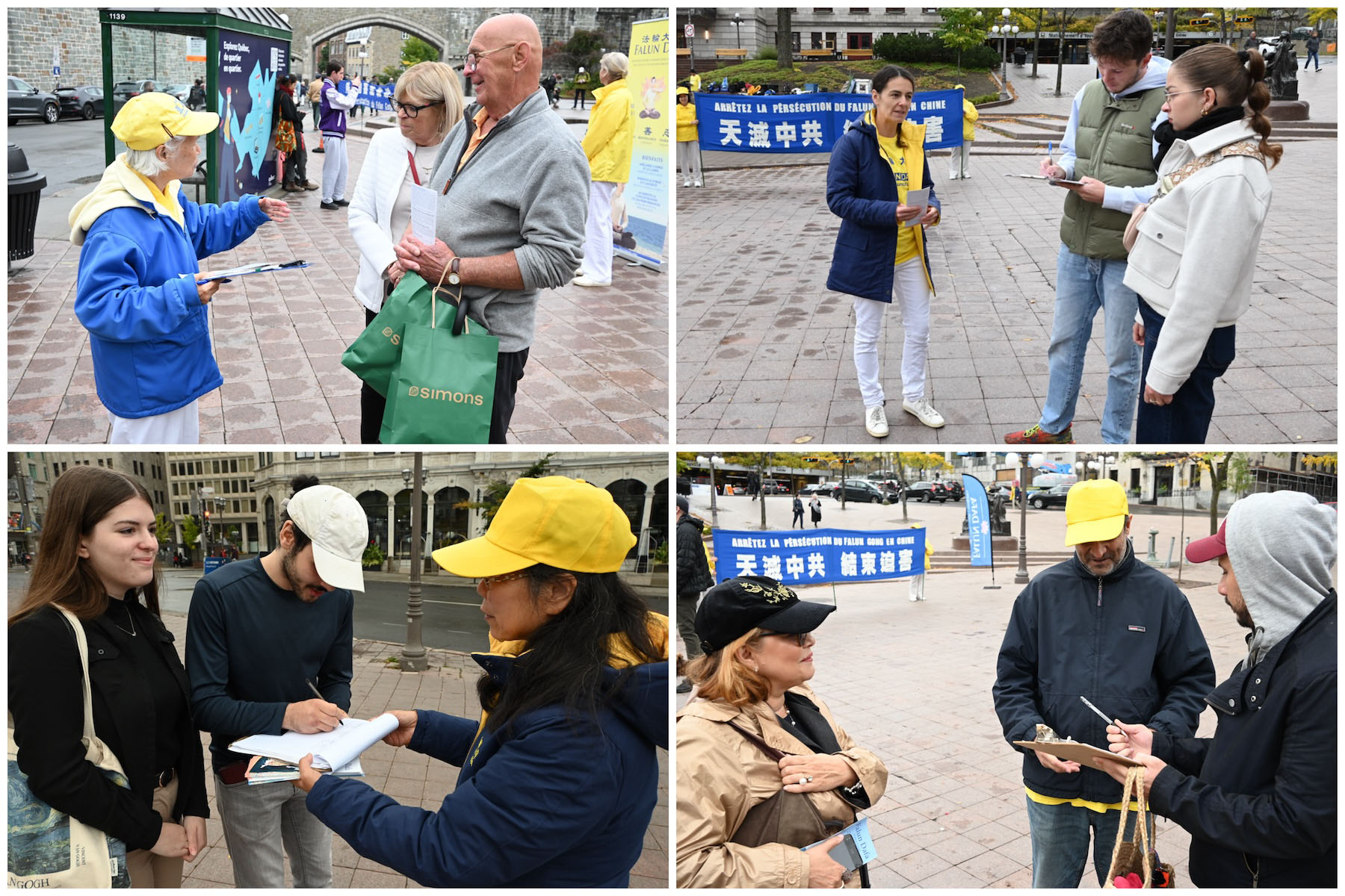 ![]() 图1~4:加拿大魁北克市的法轮大法学员在当地著名的旅游景点尤维尔广场(Place D'Youville)讲真相活动现 |