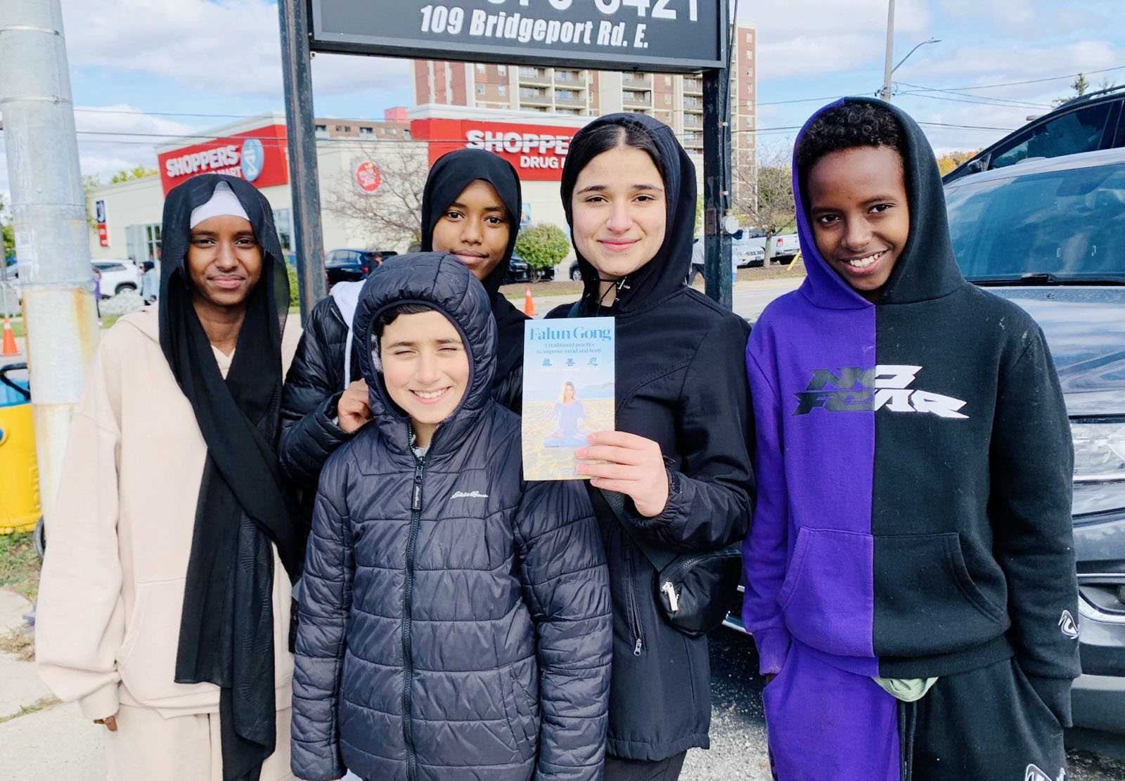 巴彦(Bayan)和她的朋友安贾特(Anjat)是基奇纳的当地居民,他们都是学生。当法轮大法天国乐团方阵经过时,他们都为其拍手、欢呼,并表示乐团演奏的乐曲很美。