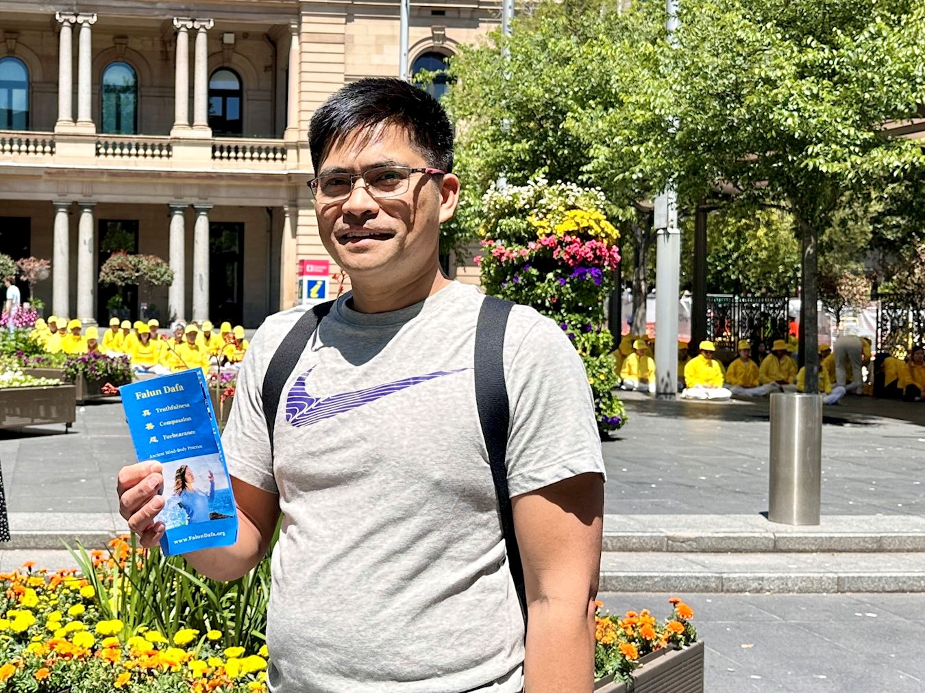 萨姆森·埃斯皮诺萨(Samson Espinoza)来自菲律宾,当天第一次听说法轮功,了解到在中共对法轮功学员持续二十五年的残酷迫害后,立即签名支持法轮功学员和平反迫害,“我可以看到法轮功是平和的,我需要与我的同事和朋友们分享今天了解到的信息。”他说。