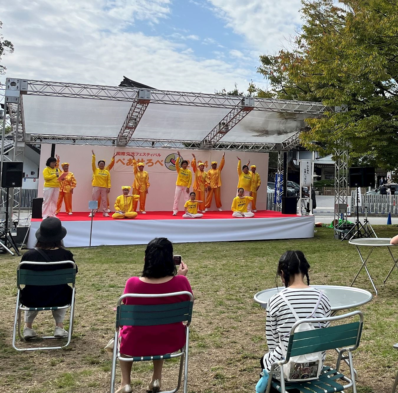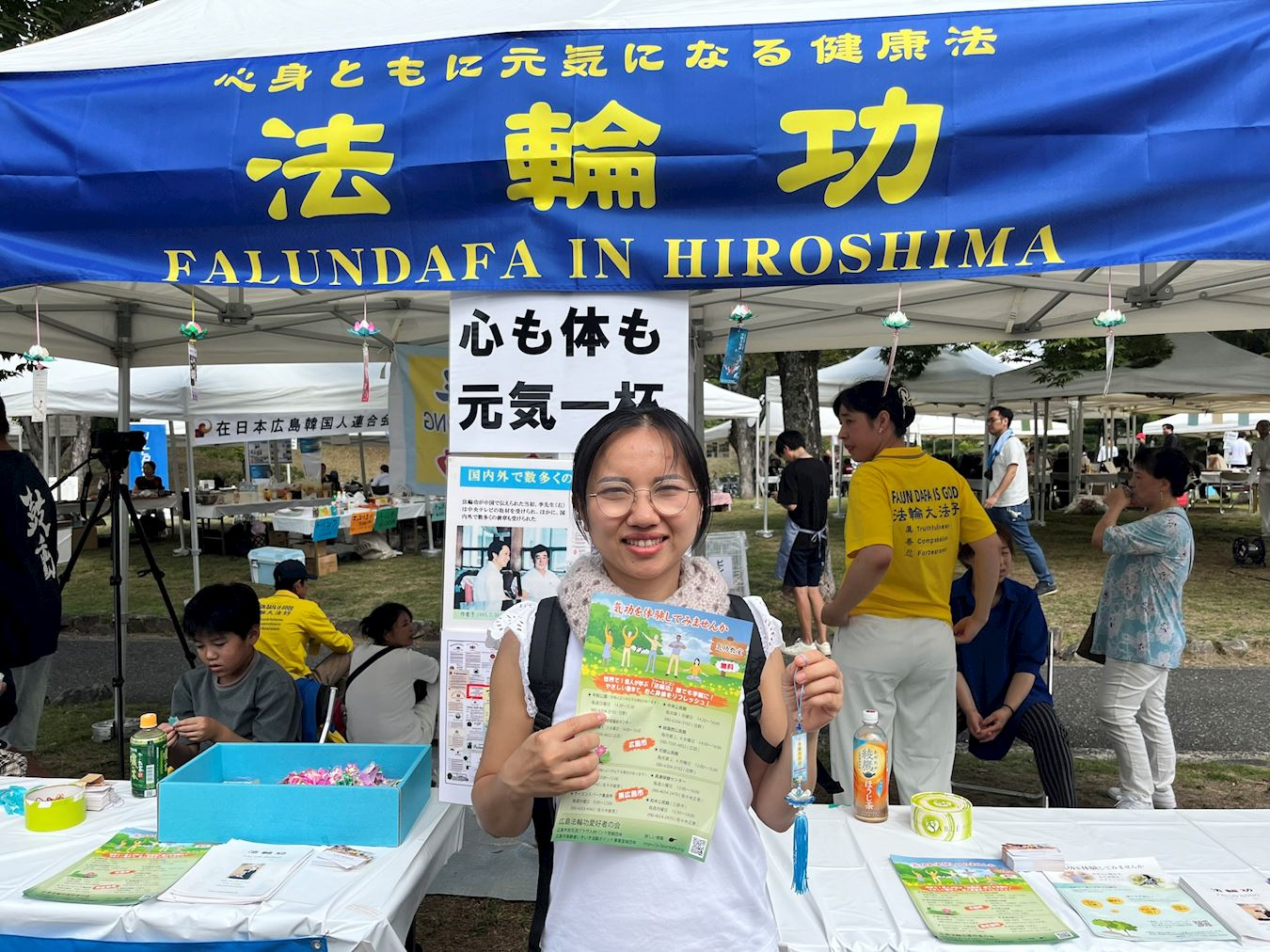 当天共有十一个团体参加了舞台表演,二十五个团体设置了展位。法轮功学员在舞台上演示了法轮功的五套功法,并表演了腰鼓舞。并在展位炼功、发资料,介绍法轮功的美好。有的市民表示在水滨音乐会上看到过功法演示,也有市民说在广岛鲜花节上看到过法轮功学员的表演,因此倍感亲切。