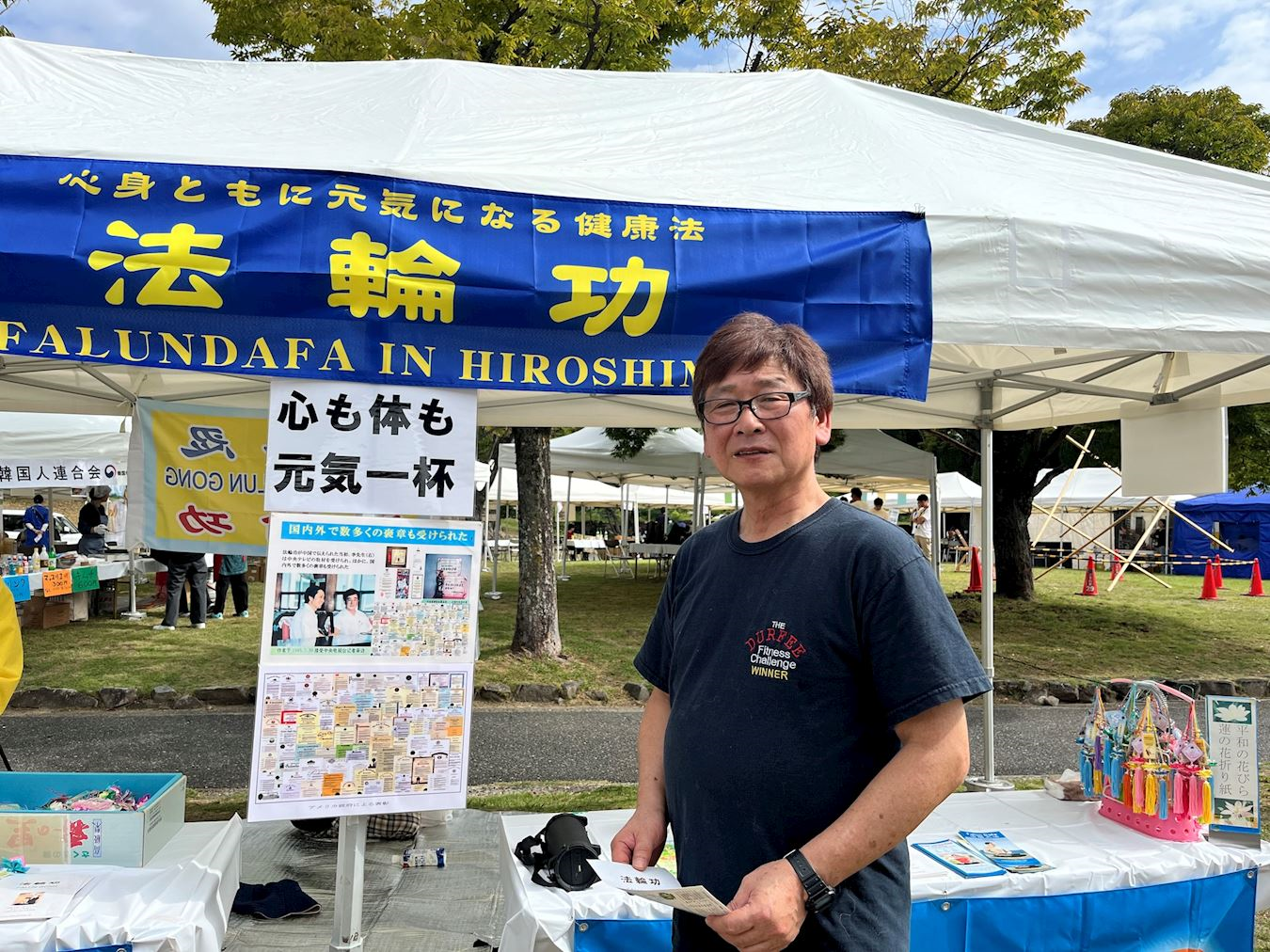 广岛市议员、本次活动实行委员会代表山本昌宏(Masahiro Yamamoto)先生,在活动当天对法轮功学员说:“如果有什么事可以到市议会找我,给事务局打电话时,说是法轮功就行。”