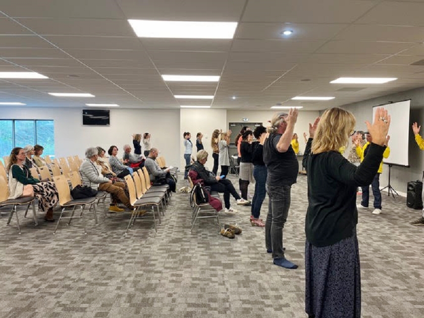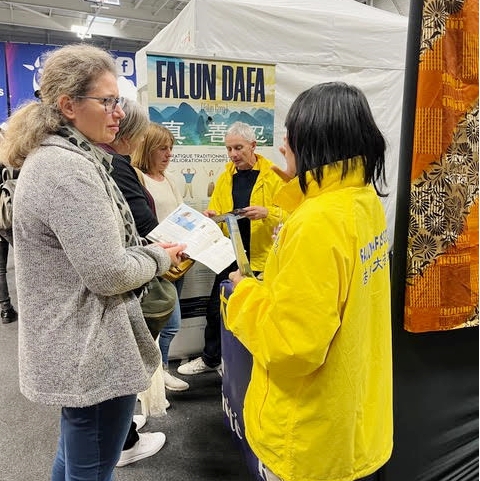 在展位上,一位先生说他正开始探索精神修炼,并对打坐产生了浓厚的兴趣。他与法轮功学员进行了长时间的交谈,似乎不想离开展位。他表示希望能够进入一种不被思绪打扰的入静状态,但尽管他遵循一些书中的指导,却始终无法达到。法轮功学员告诉他,法轮功第五套功法的打坐是有所不同的,修炼人通过《转法轮》书中的教导,以及在日常生活中努力实践真、善、忍的原则来获得帮助,达到入静。
