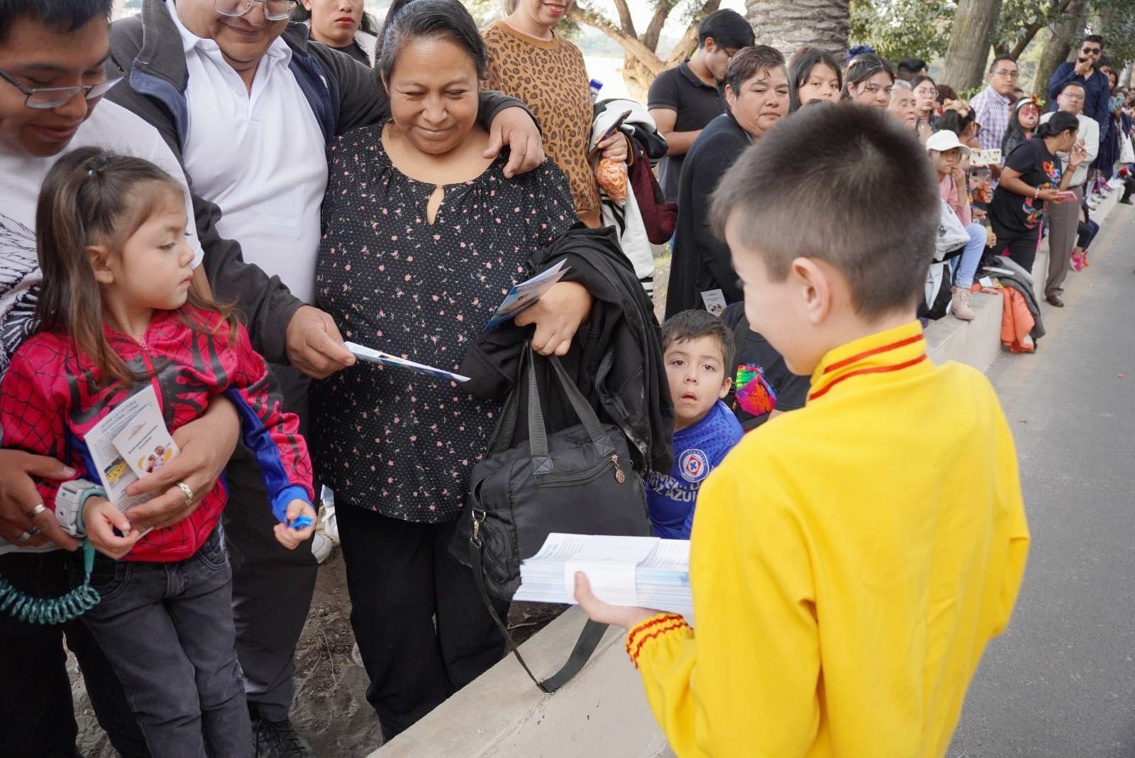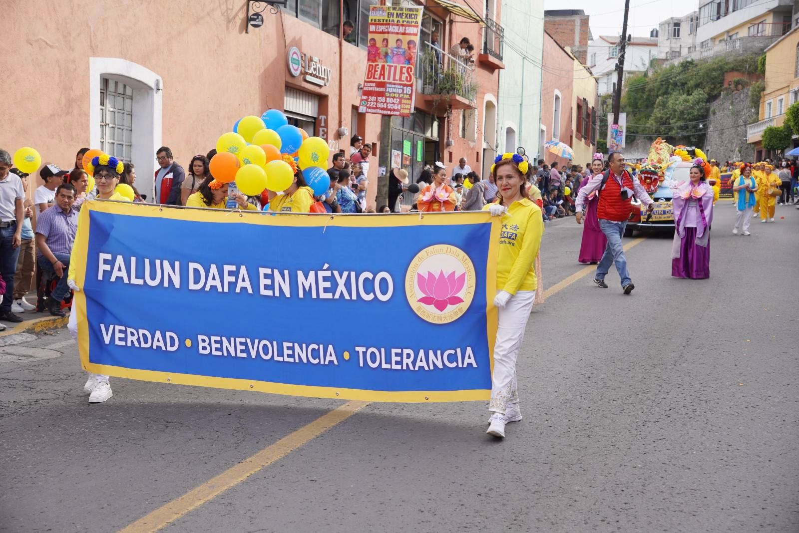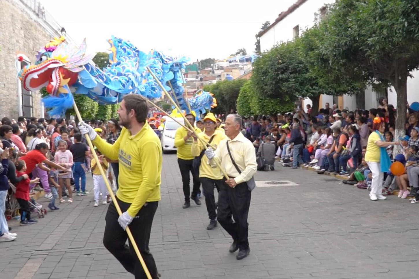 特拉斯卡拉位于墨西哥东部,是特拉斯卡拉州首府,特拉斯卡拉博览会是这里的年度盛事。法轮功学员在当天的开幕式游行中举起印有“法轮大法在墨西哥”、“真、善、忍”的横幅,他们展示柔和缓慢的法轮功功法,向观众派发真相传单传递法轮大法的美好,同时揭露中共残酷迫害法轮功的真相。