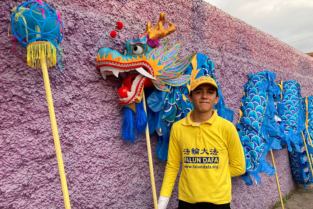 罗莎的侄子阿图罗(Arturo)今年十三岁,他和父亲都参加了舞龙队。阿图罗说:“第一次参加这个活动感觉非常特别,很有意义,太棒了。”他表示,家人和同修们都鼓励着自己,希望下次还能参加这样的活动。
