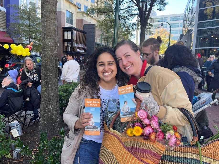 德弗里(Devery)和梅西(Macy)表示,法轮功学员传递的真、善、忍信息让她们产生共鸣。