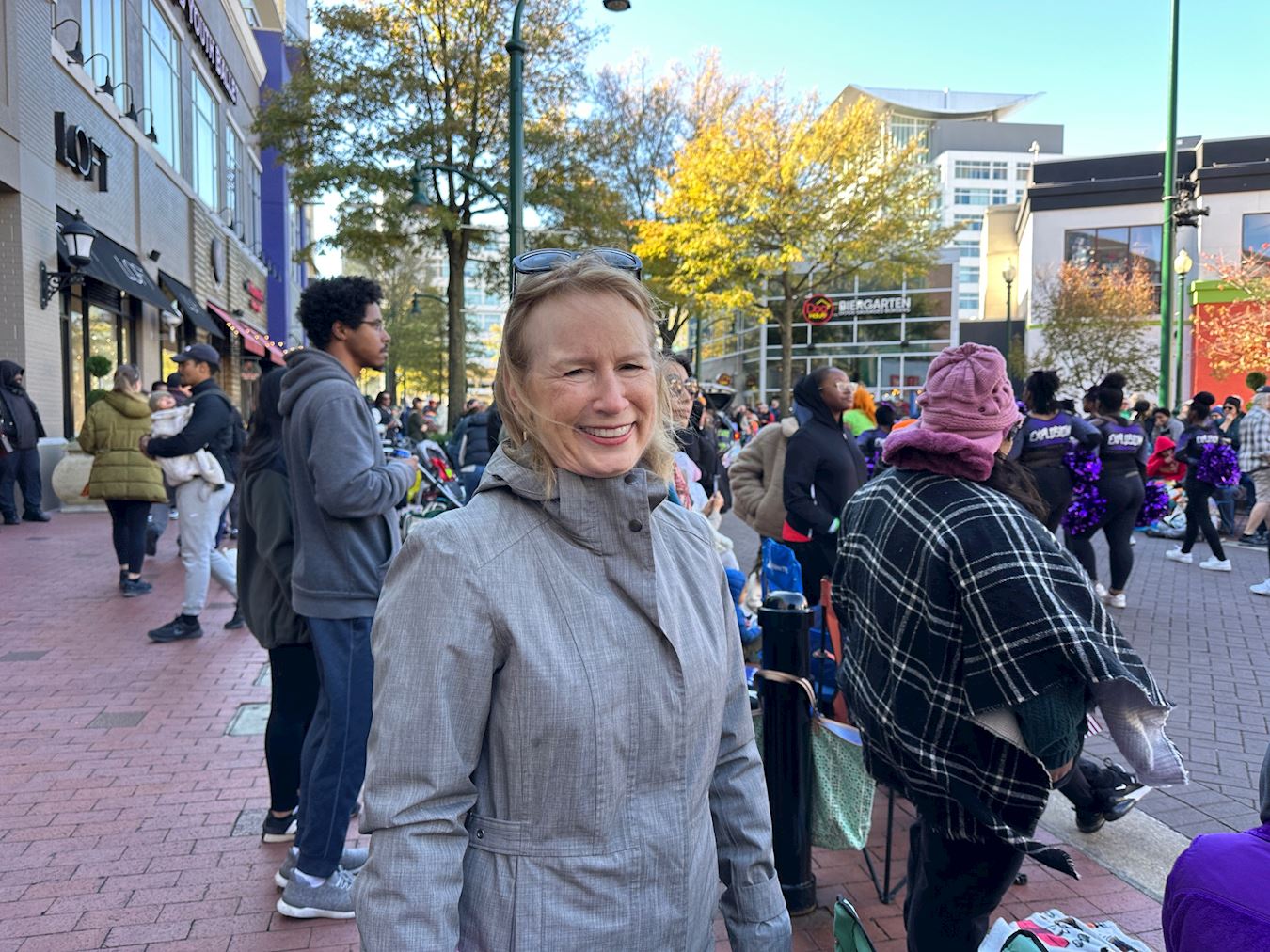 马里兰银泉居民托尼·悉南(Tony Hinnant)非常享受法轮大法游行队伍的节奏和氛围,他欣然接过大法弟子递上的传单,并表示希望明年感恩节还能看到大法弟子的游行和表演。