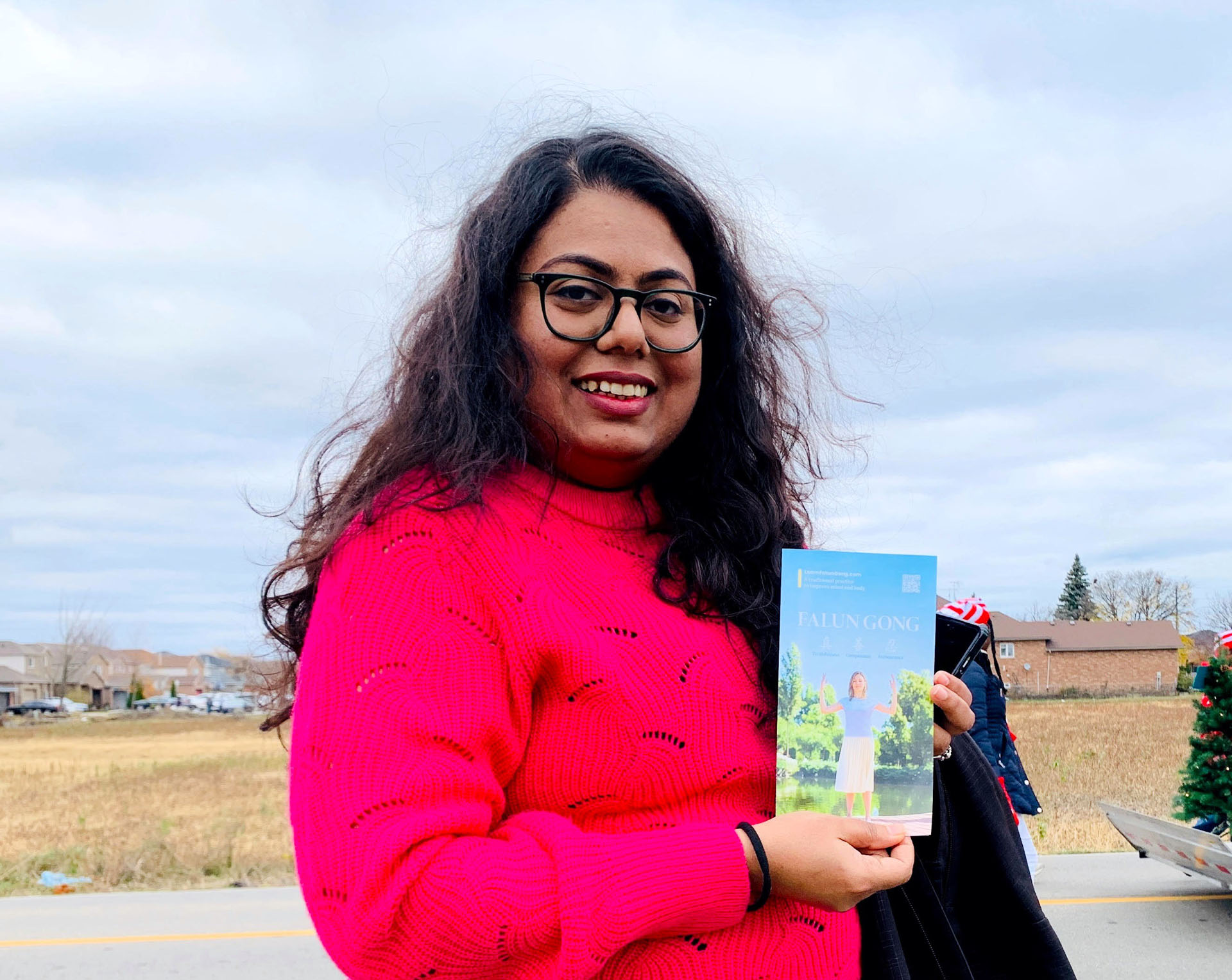 在了解到乐团的成员都是法轮大法的学员后,卡里什玛便接过了大法的传单,并询问了学员是否有在汉密尔顿举办的教功班。学员表示这是网上免费教功班,还向她介绍了大法网站,她表示自己回去后会去了解。同时,她也很赞赏大法遵循的真、善、忍的理念。