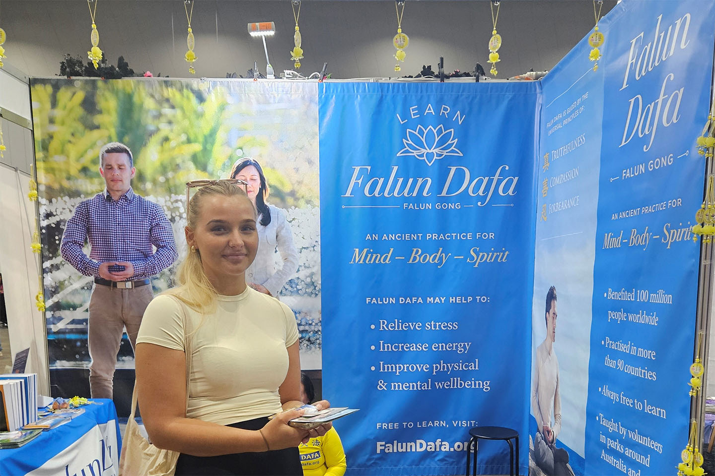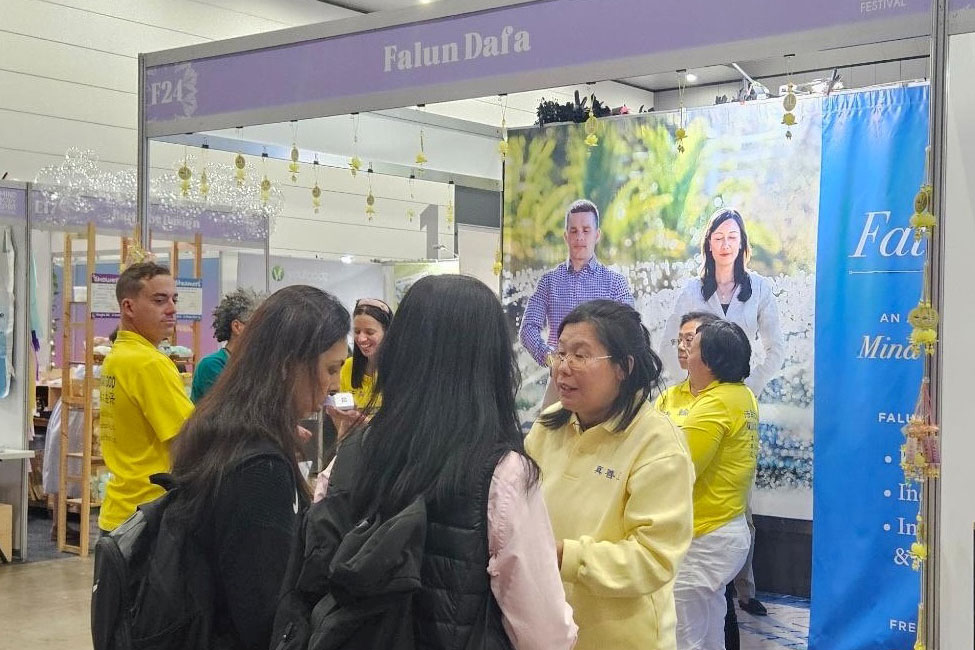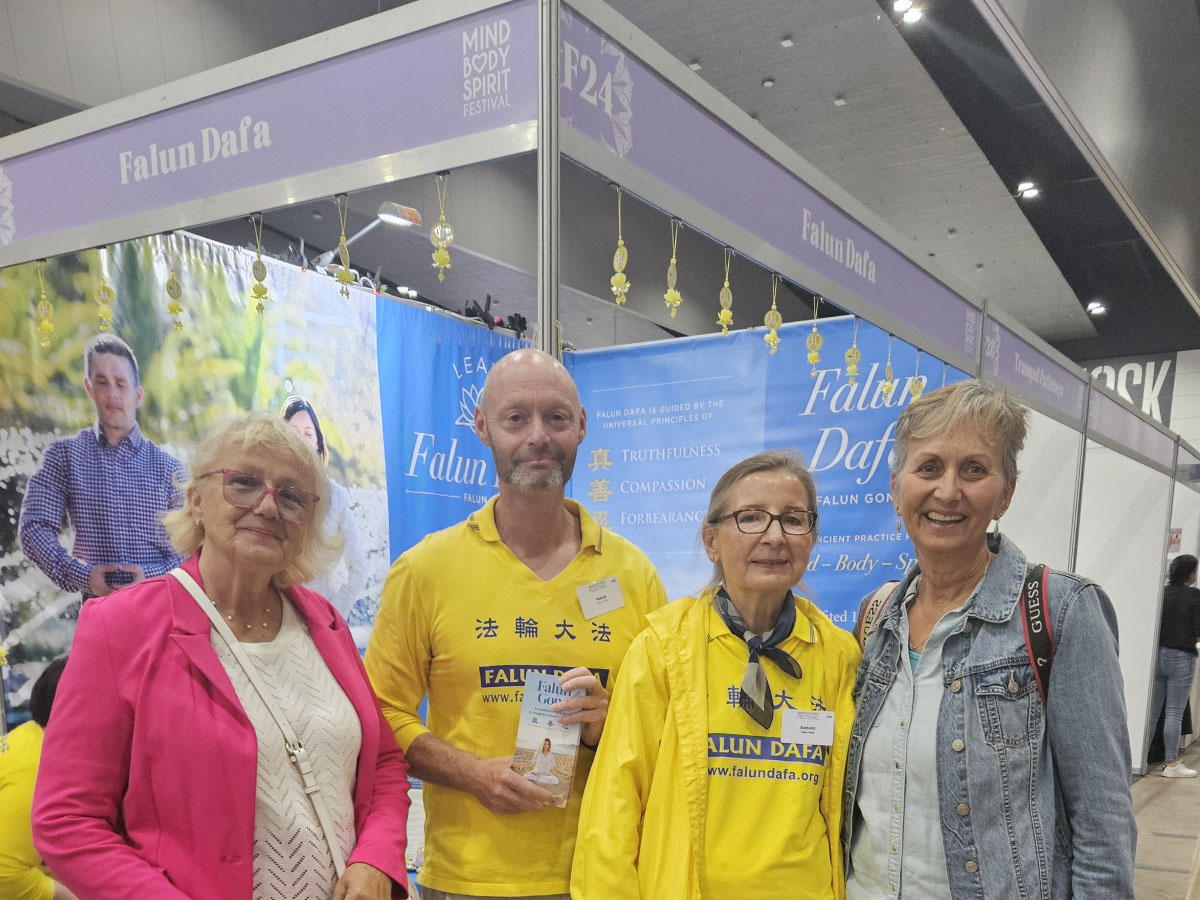 【明慧网二零二四年十一月二十日】(明慧墨尔本记者站报导)二零二四年十一月十五日至十七日,在墨尔本会展中心(Melbourne Convention and Exhibition Centre)举办的“身心灵健康节”(Mind Body Spirit Festival)上,法轮功展位吸引了很多观众驻足了解详情。 “身心灵健康节”是澳洲规模最大、历史最悠久的健康展会,在墨尔本约半年举办一次,本次健康节有近200个展位。三天的展会,观众络绎不绝。 一位在墨尔本疫情封锁期间得知法轮功、并参加了网上教功班的来宾表示,他相信,被中共如此打压,那么法轮功一定是一个非常好的功法。展会期间,通过和法轮功学员的交谈,有缘的人们欣喜于找到了能让身心昇华、适合自己的打坐方法。