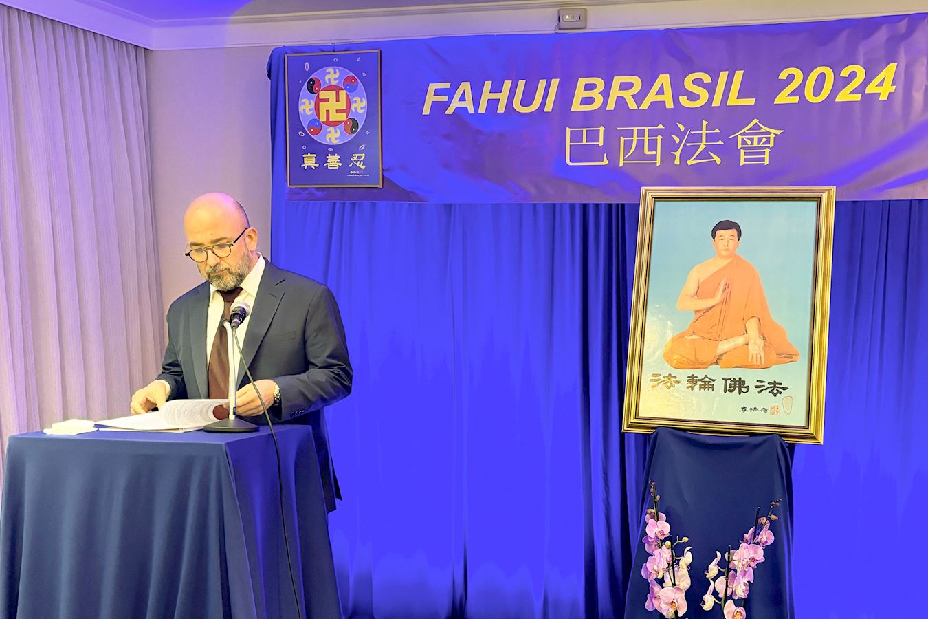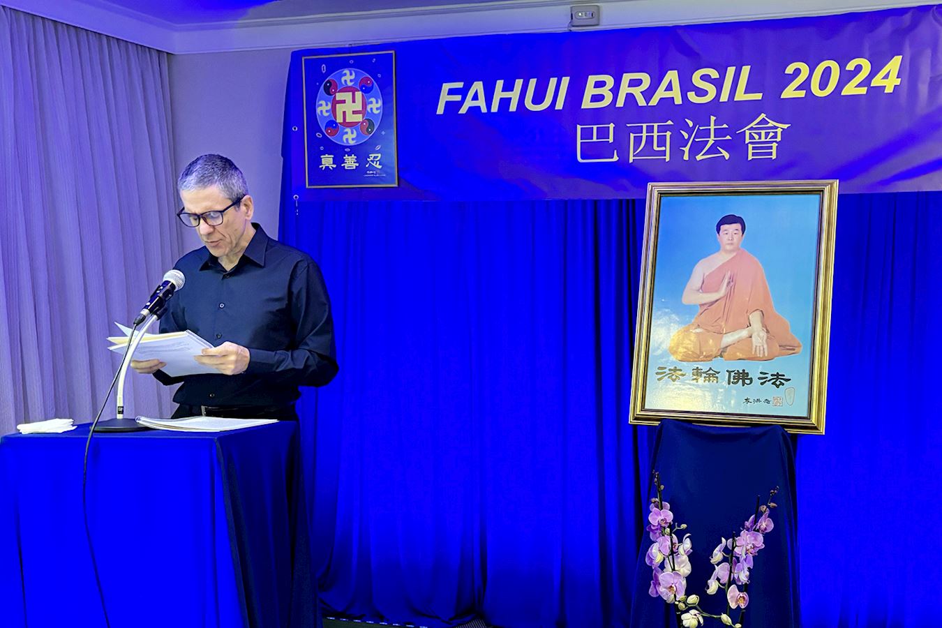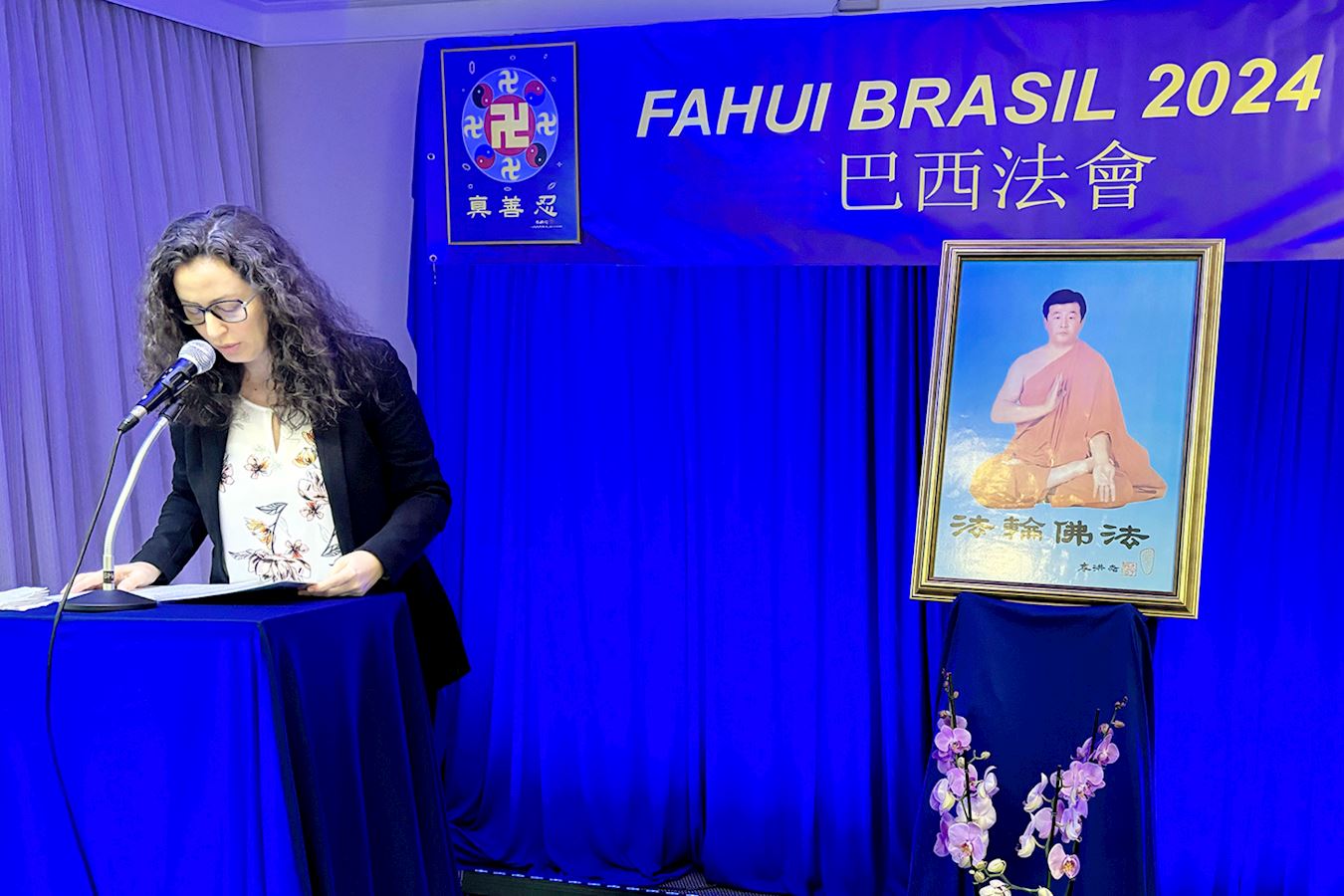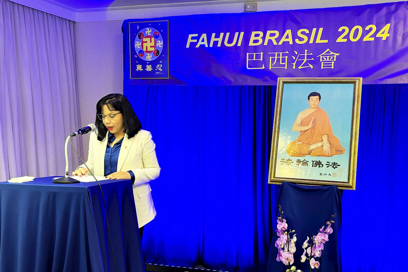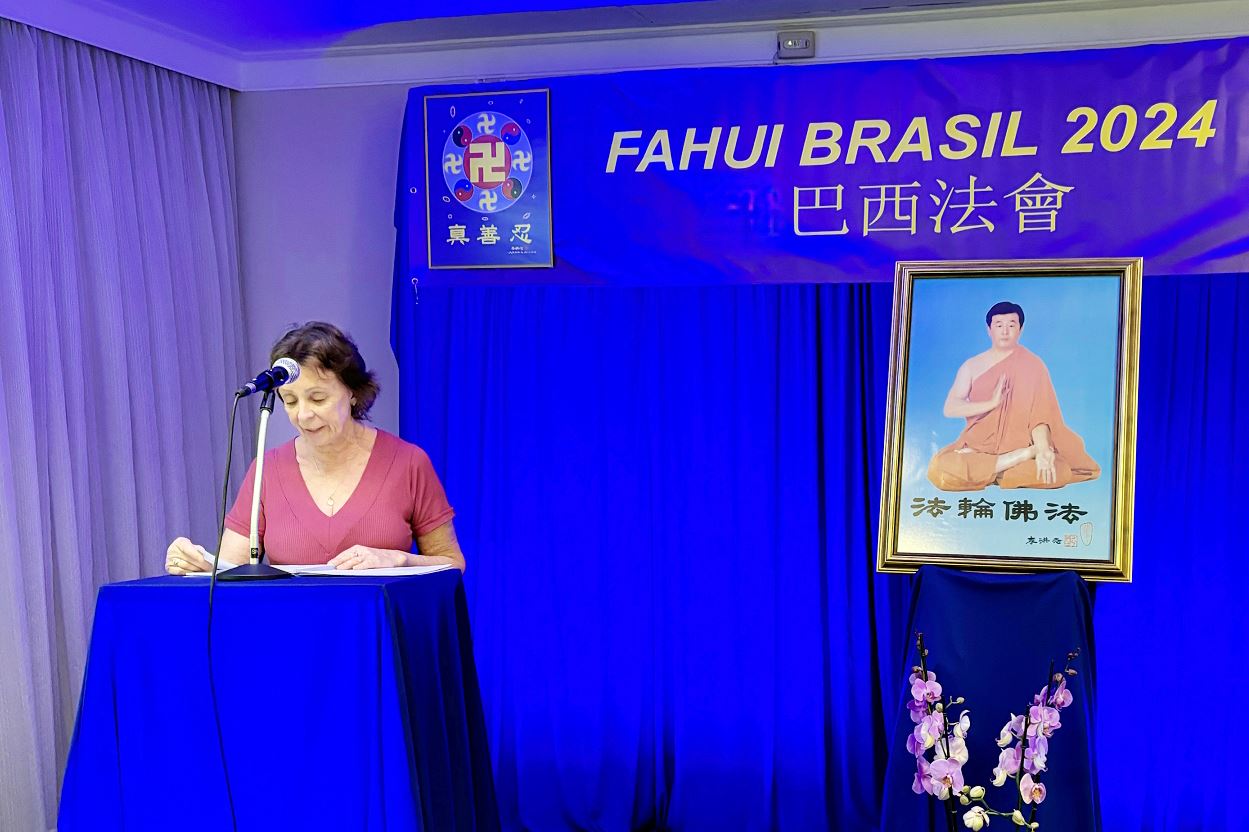 ![]() 图1~6:巴西法轮功学员在法会上分享修炼心得。 |