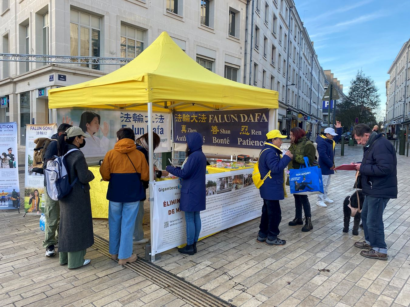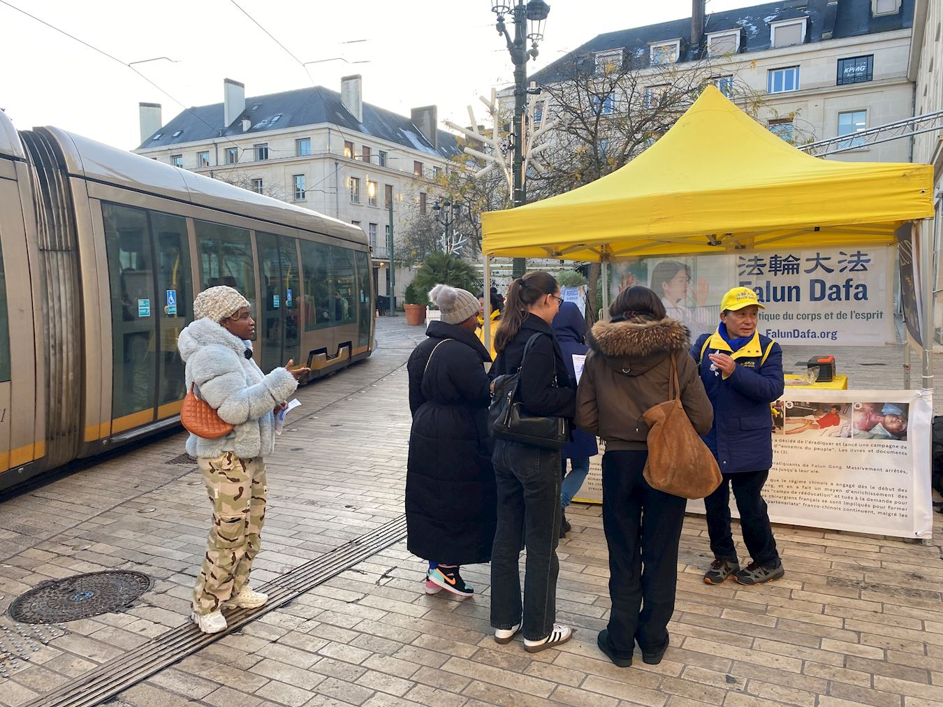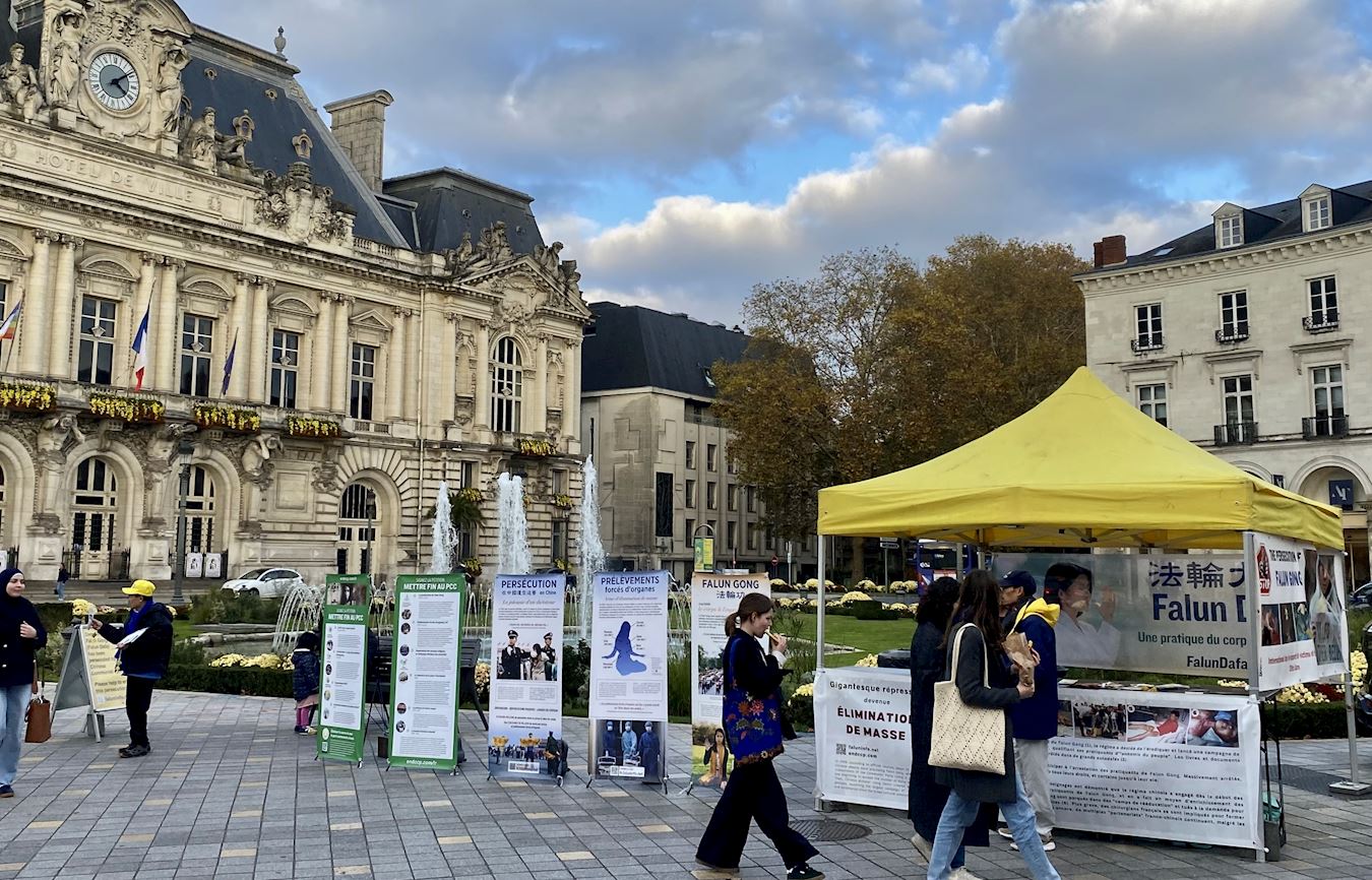 十一月十五日,法轮功学员在图尔市的让·乔雷斯广场(Place Jean Jaurès)举行了信息日活动。该广场位于市政厅前,这里有一条步行通道,许多行人在往返于工作地点和住所之间,经过这里。