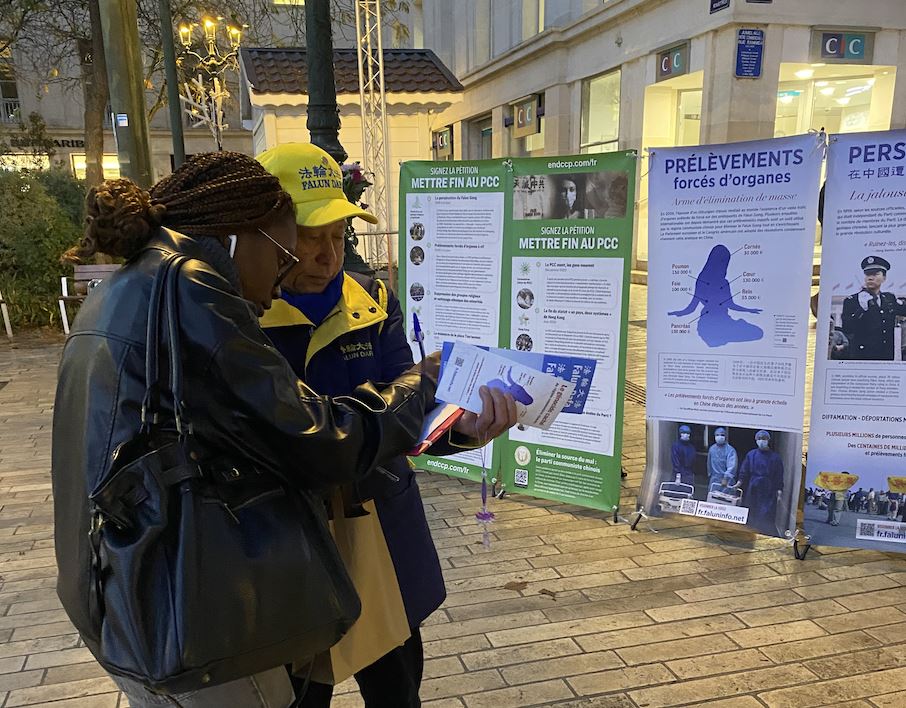 大卫是奥尔良市政府的工作人员,他说 :“人们有自由参加这些活动,就象在法国骑自行车一样。”他签署了两份请愿书:一份是由 DAFOH(反对强迫器官摘取医生)和 ETAC(结束中国器官移植滥用)发起,旨在结束强迫器官摘取;另一份则是结束中共的邪恶行径。