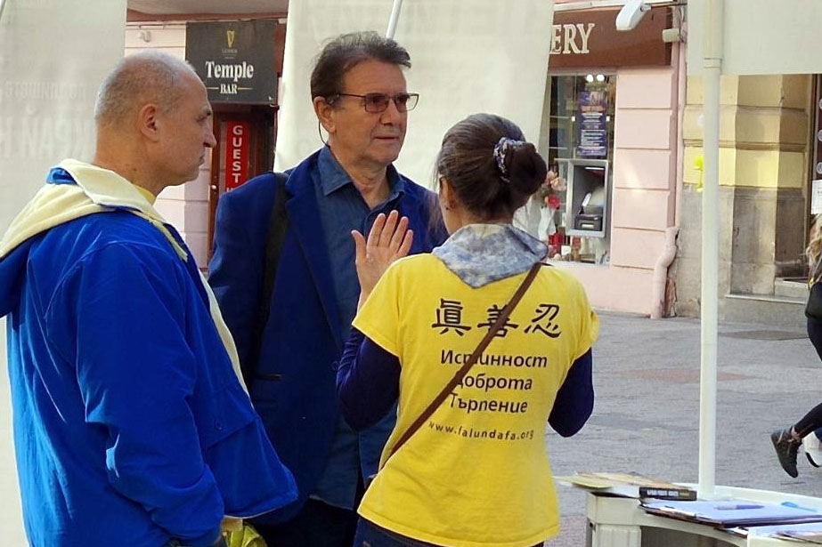 当天保加利亚某政党的几位志愿者也在普罗夫迪夫散发传单,他们对法轮大法很感兴趣,请学员讲一讲,他们聚精会神的听着,对中共犯下的罪行感到非常吃惊,其中一人说,“(中共对法轮功学员的迫害)听起来像恐怖电影。 ”