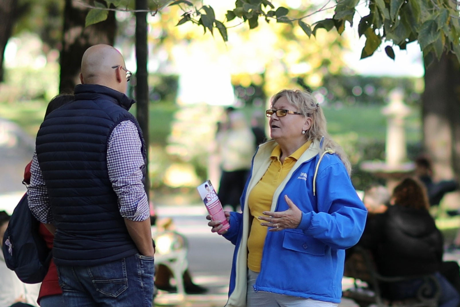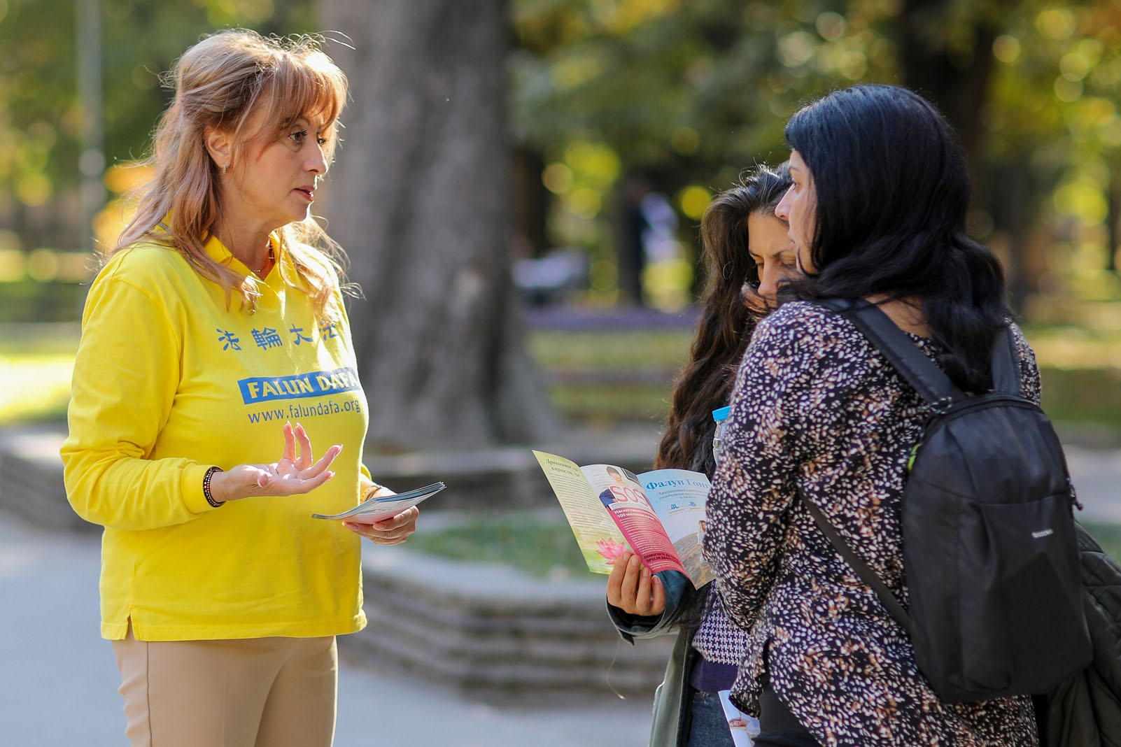 学员克尔卡(Kerka)将真相传单发给众人,并与大家交谈。她表示,有许多路人询问是否可以参加炼功,还有人在两份请愿书上签名支持法轮功,他们中有教师、运动员、社区成员、学生、外国人,是来自各个年龄段和社会背景的人。几乎每个人都说,法轮功能量非常强大,同时又令人感到周围的环境很平和宁静!