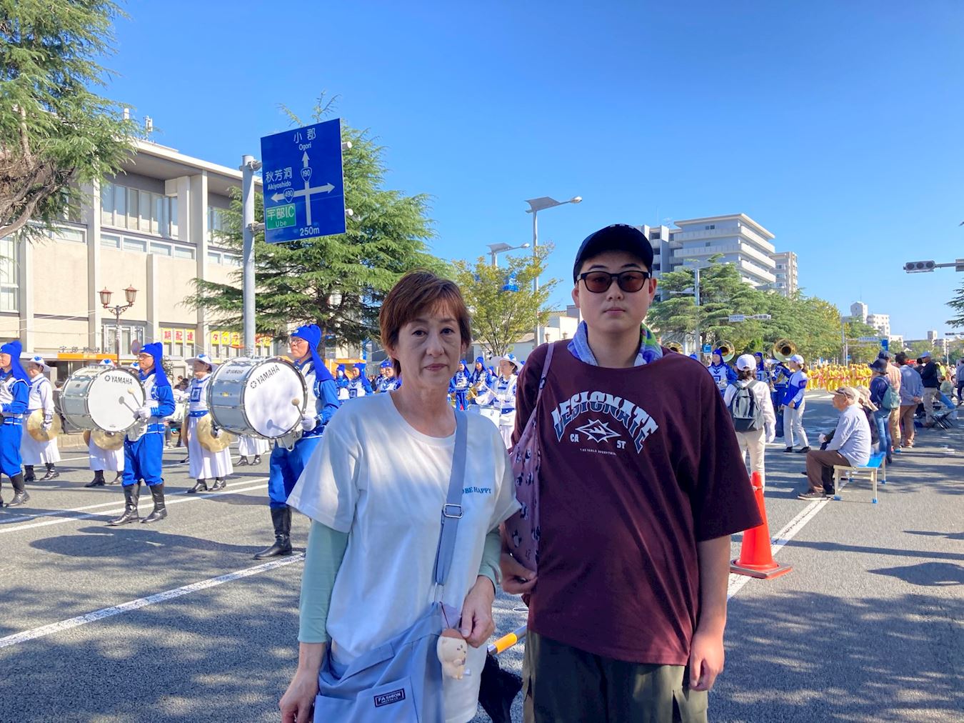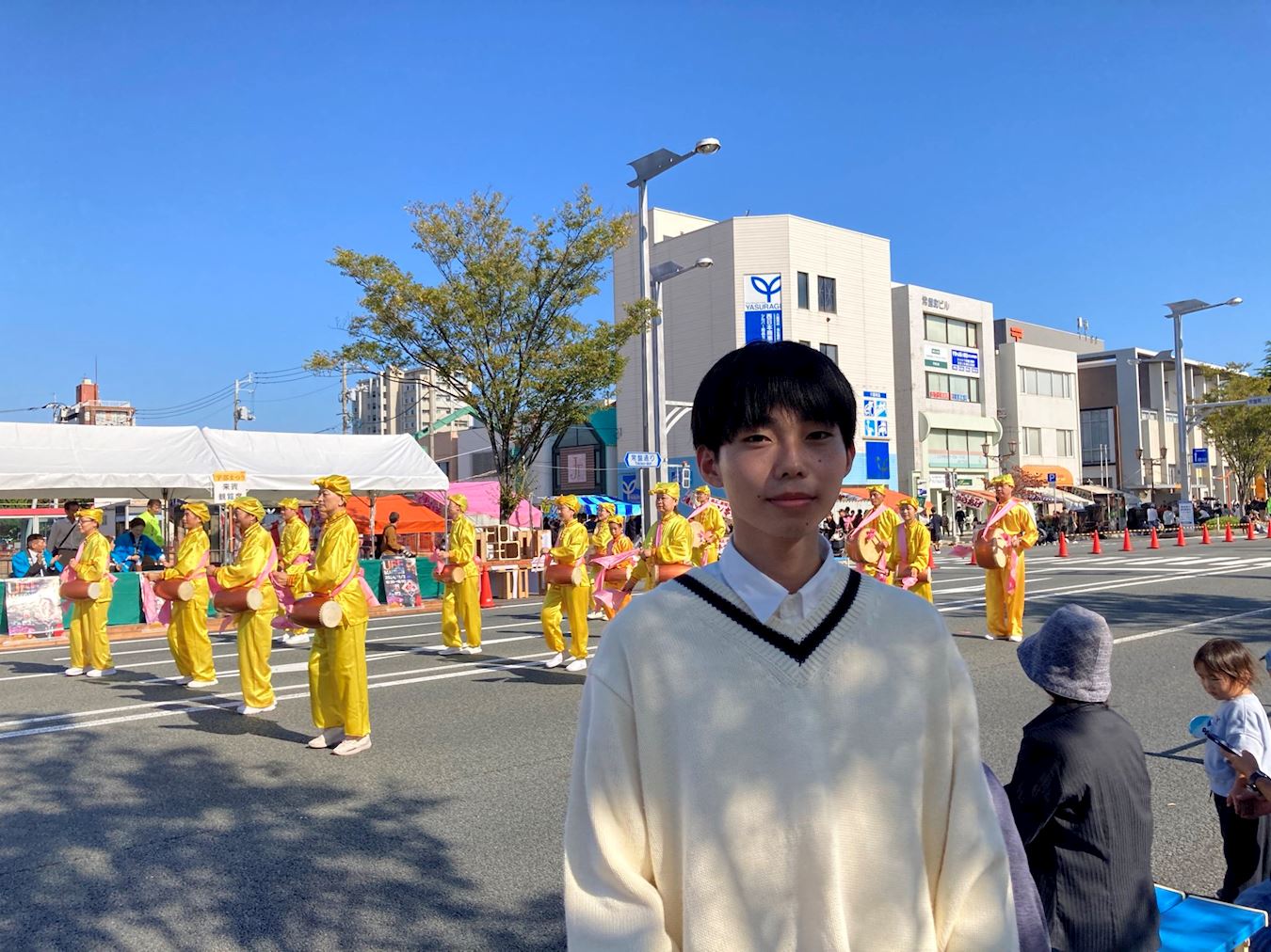 去年在宇部节也观看了天国乐团演奏的岩崎女士说:“动作整齐划一很棒,音色也优美。虽然我没看很多其他团体,但我还是被天国乐团的演奏声吸引住了,聆听了他们的表演。”