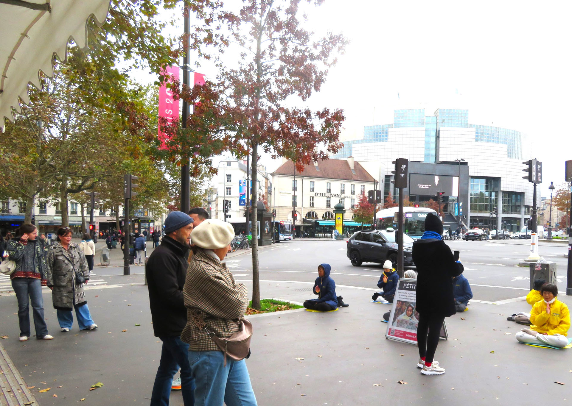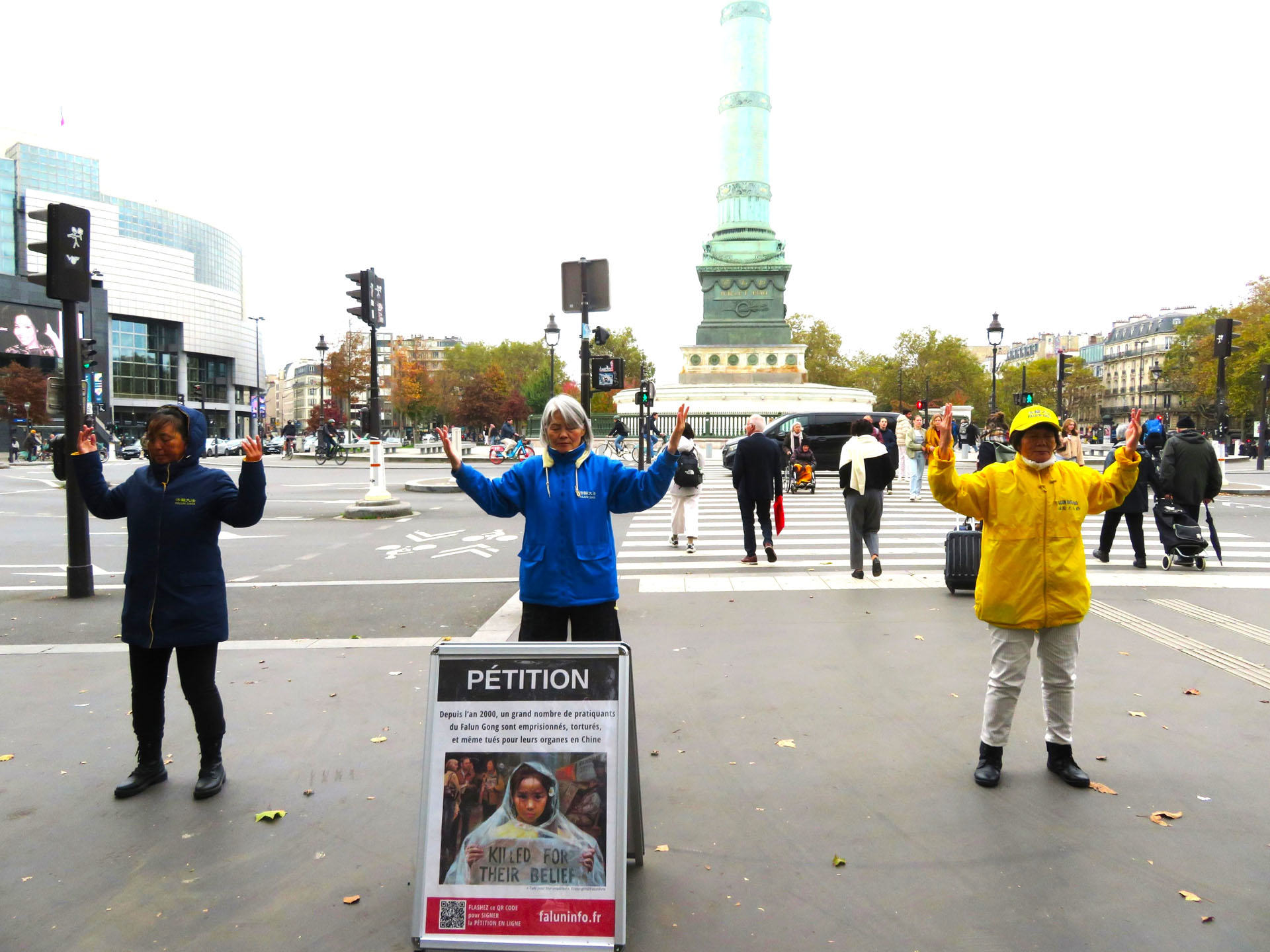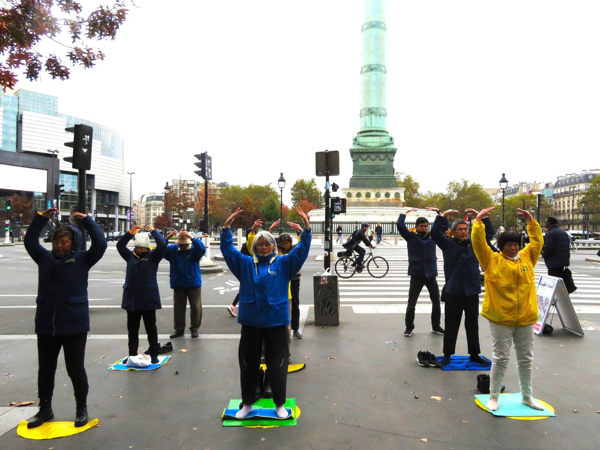 ![]() 图1~5:二零二四年十一月三日上午,在巴黎巴士底广场,法轮功学员进行了法轮功功法演示,吸引了很多居民和游客驻足,了解真相。 |