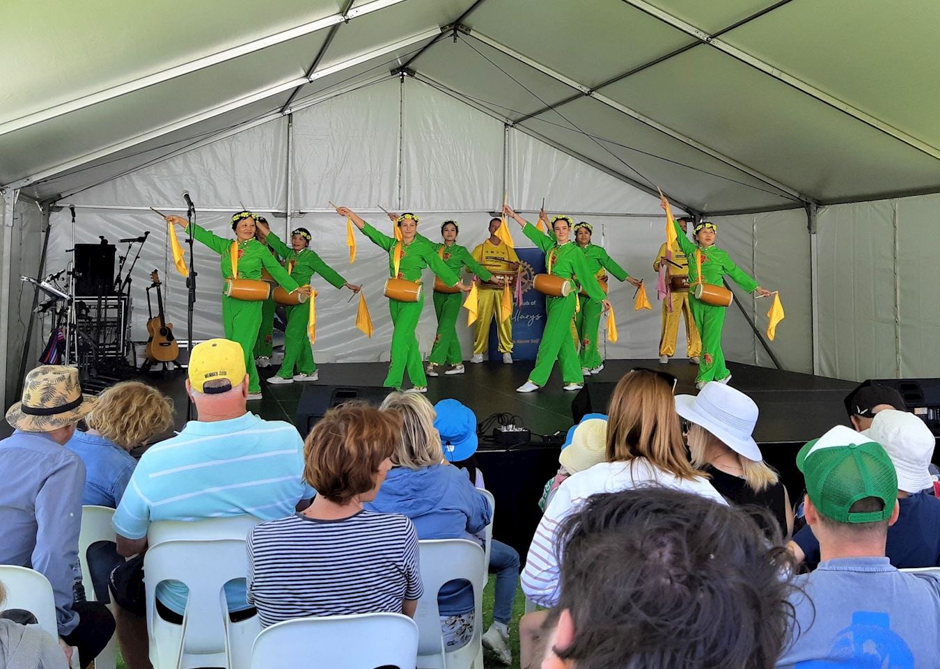 ![]() 图7:西澳法轮功学员在卡琳社区博览会舞台上为观众表演中华传统腰鼓舞。 |