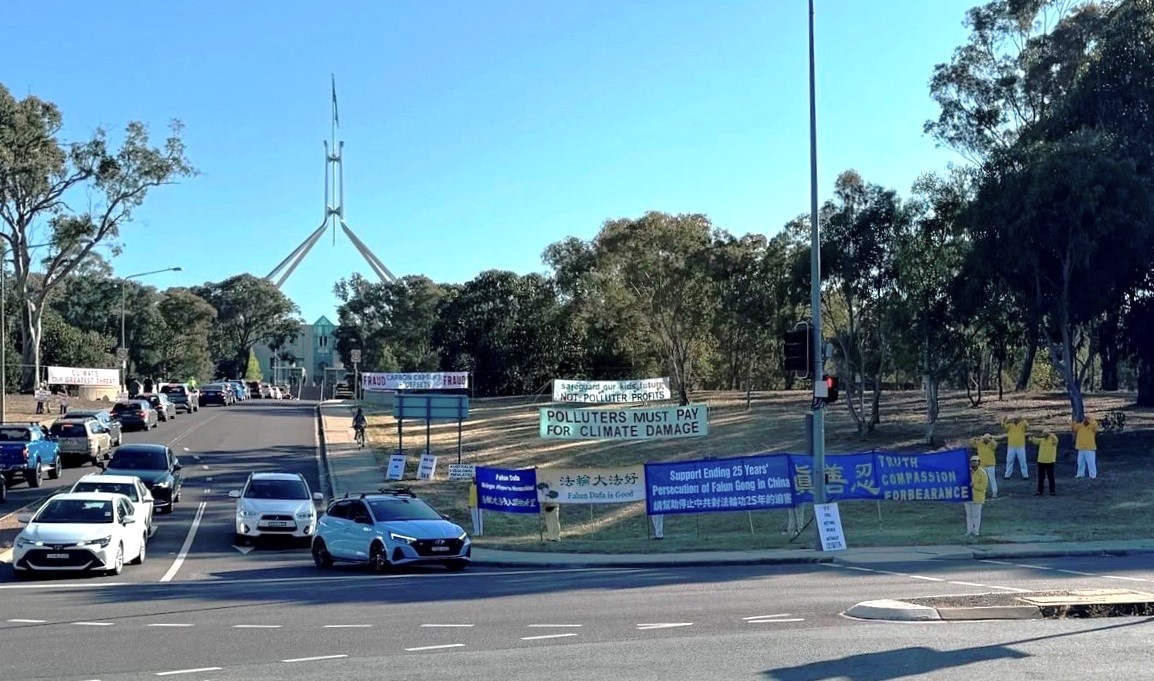 ![]() 图1~4:二零二四年十一月四日至七日上班高峰期,法轮功学员在堪培拉市中心和交通要道附近的草坪上,展示法轮功五套功法和真相横幅。 |