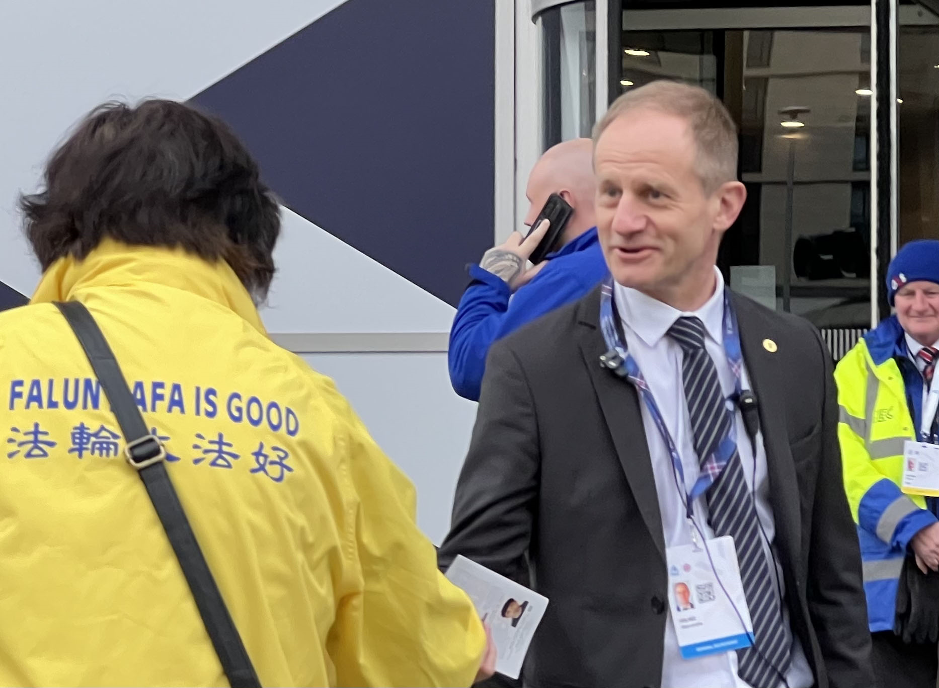 ![]() 图6:英国法轮大法佛学会代表罗斯玛丽·拜菲尔德(Rosemary Byfield)(右一) |