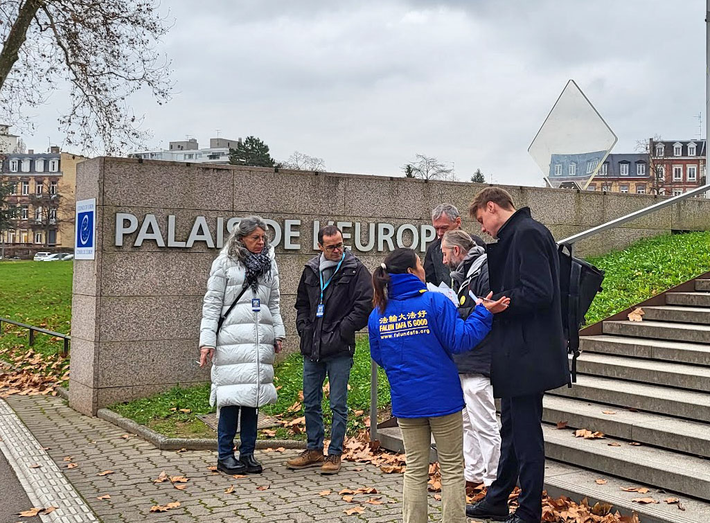 当天,部分欧洲理事会的工作人员、一些民众、前来参观的游人等都遇见了法轮功,他们主动向学员们了解真相。中共对中国法轮功学员的迫害、活摘器官,让他们震惊不已。在签署反活摘请愿书后,他们还表达了支持法轮功反迫害的心声。