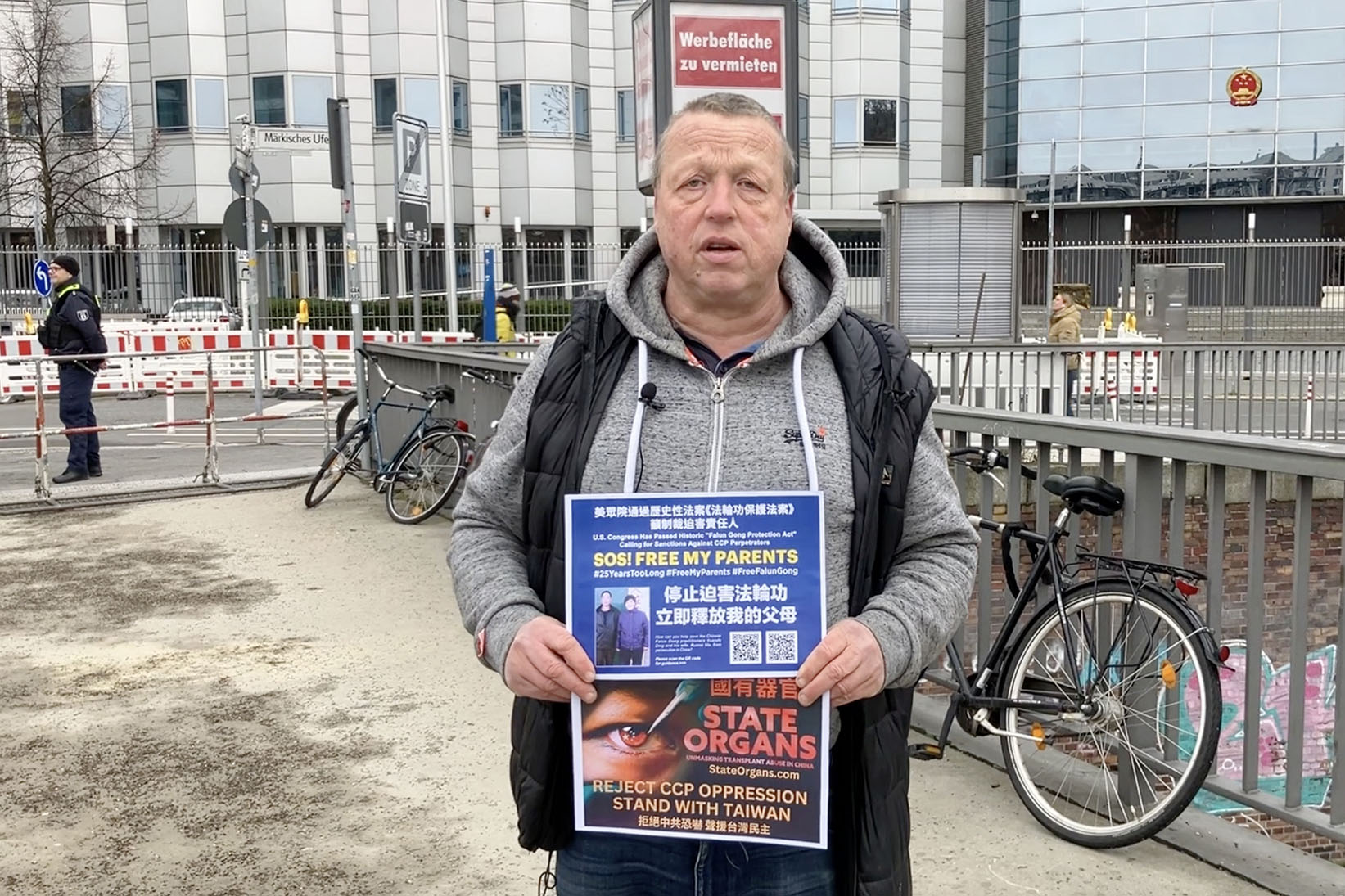 “令人伤心的是,我不得不再次在中共大使馆前进行抗议。早在三十五年前,在我们还在东德生活的时候,我们就走上街头抗议中共犯下的天安门大屠杀的罪行。”罗伯特・哈夫曼协会董事会主席基尔希说,“今天,我想跟在中国仍然受到中共政权打压而遭受苦难的法轮功学员和他们的家人们说,鼓起勇气!”