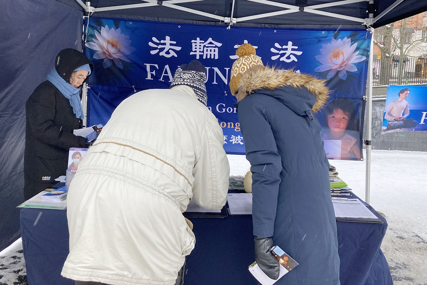 学员讲述道,在纳粹时期,纳粹用集中营的方式杀戮老百姓,现在中共是利用活摘器官牟取暴利。她表示:“媒体很少报道这类事情,很多事情被隐藏,对他们来说可能是没有新鲜感,或者更关注利益,就把头扭向一边。”最后,她高兴地接过学员赠送的真相资料,并祝愿法轮功学员好运。