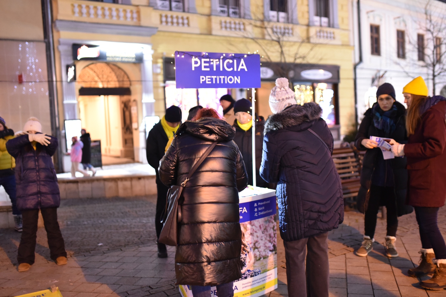 十二月十四日,在斯洛伐克西部城市尼特拉,法轮功学员在斯特法尼科街(Stefanik)举行请愿活动。尽管天气寒冷,许多路人还是停下来签名,呼吁制止迫害。