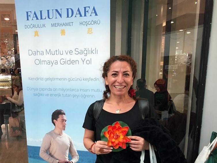 ![]() 图2:甘泽(Gamze)女士赞叹法轮功学员带着奇妙的能量,她说:“我感到平和、安静与宁静。” |