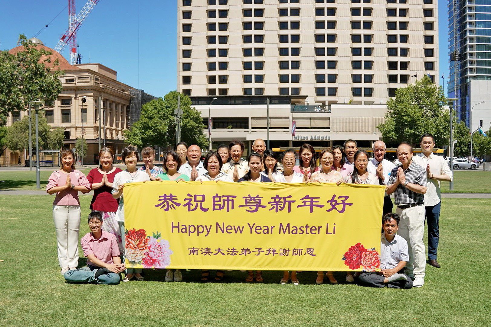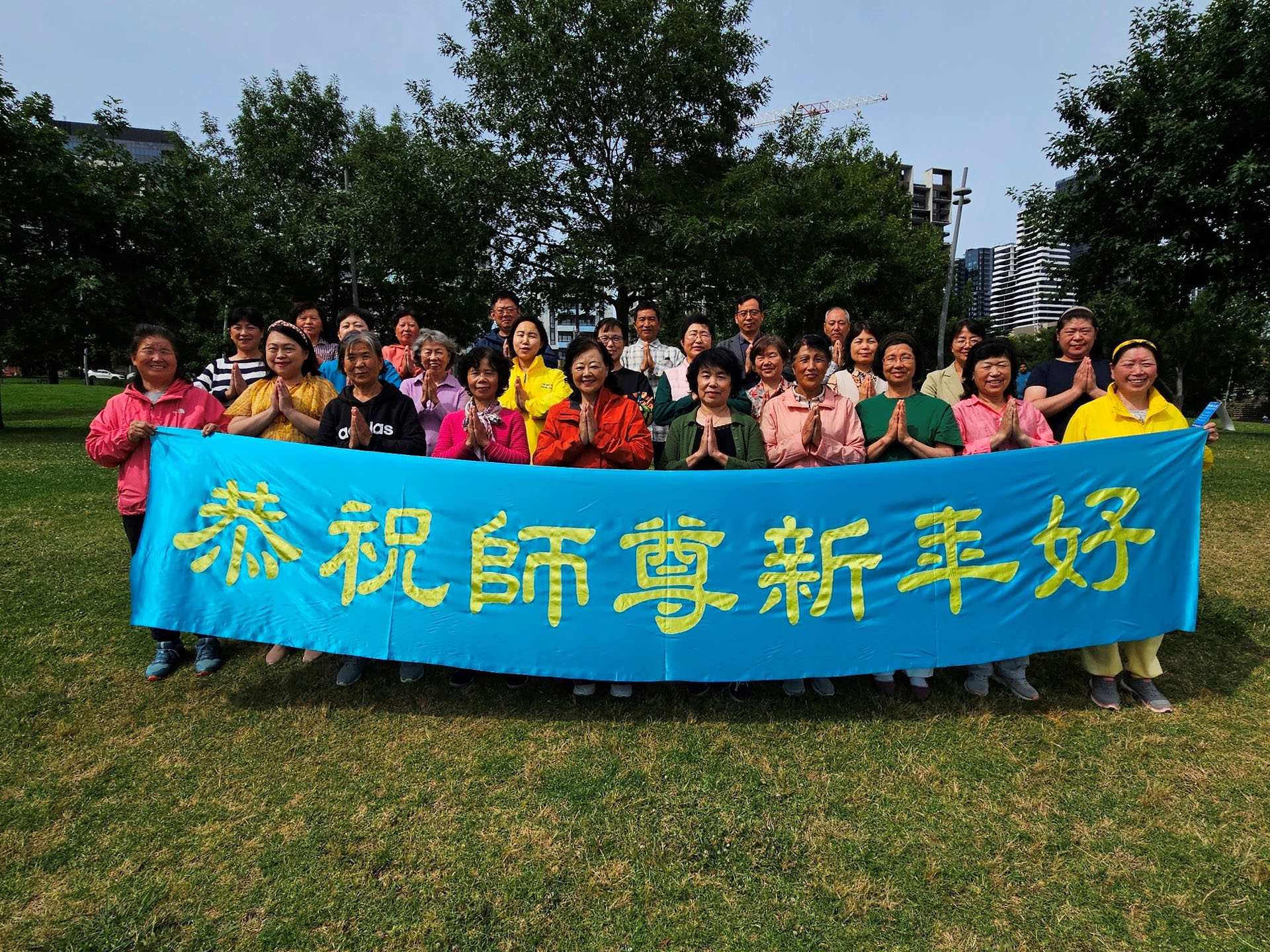 ![]() 图1:墨尔本大法弟子恭祝师尊新年好! |