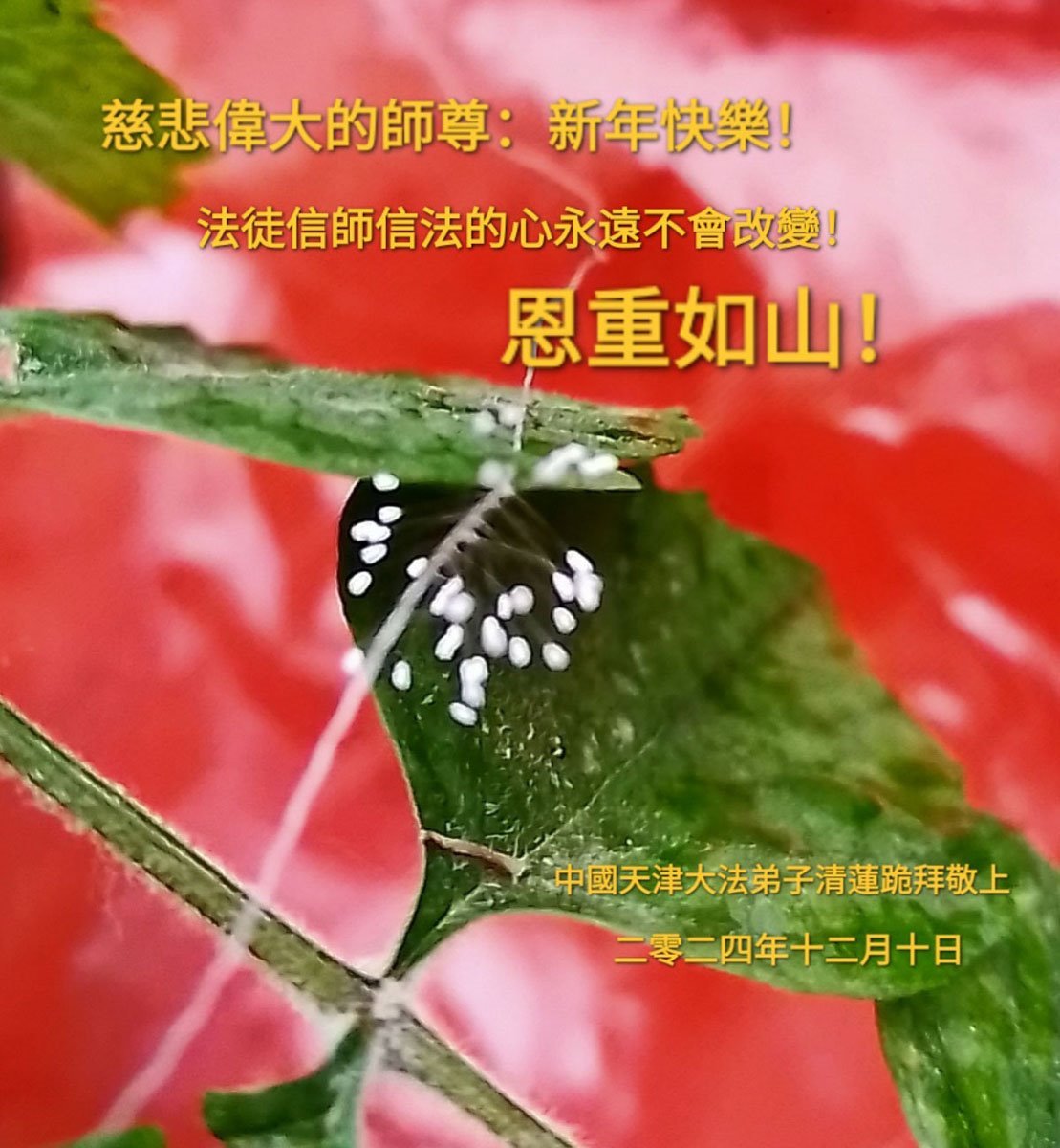我们一路走来经历了许多风雨,所有的一切都离不开师父的慈悲保护。在新的一年里,我们要找回修炼如初的状态,紧跟师父的正法進程,做好三件事,抓紧救人,跟师父回家。