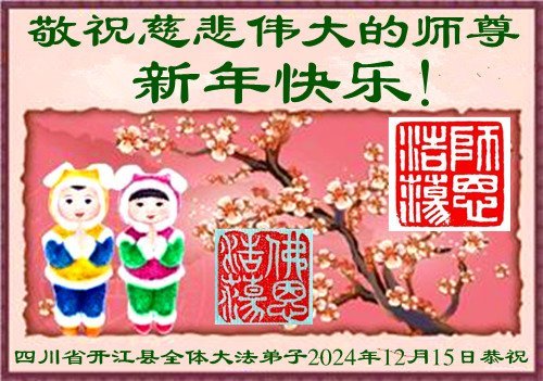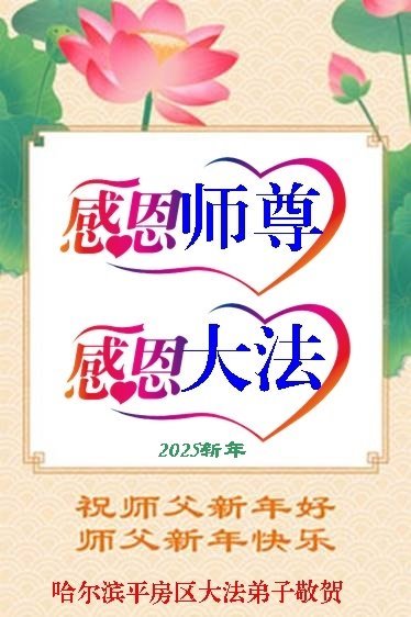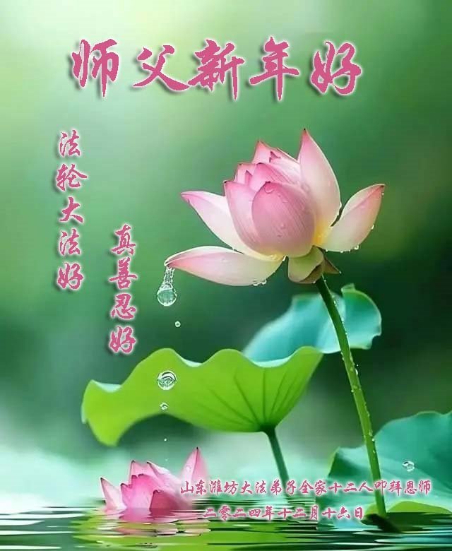 【明慧网二零二四年十二月二十七日】二零二五年新年的钟声即将敲响,明慧网收到来自中国大陆各省市入道得法不久的新学员敬献给李洪志师尊的新年问候。在此法正乾坤的历史时期,能与师尊接上圣缘,众多新大法弟子感到无比幸运,体验到了法轮大法的超常,找到了生命的真谛。新学员感恩师尊的慈悲救度!恭祝师尊新年好!
