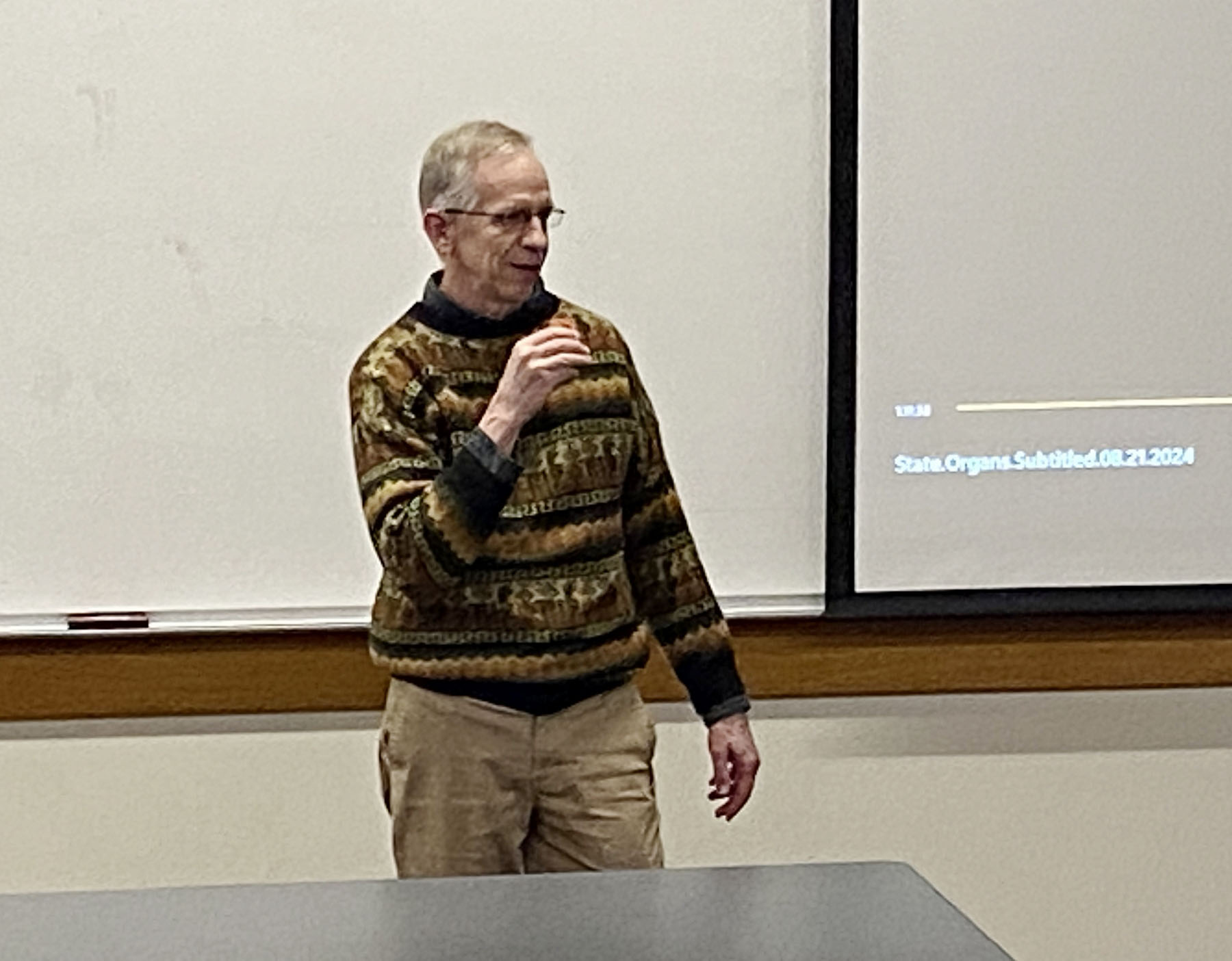 ![]() 图3:圣斯科拉斯蒂卡学院健康人文项目的现任教师、前明尼苏达大学人权与健康项目主任科克•艾利森博士在台上发言。 |