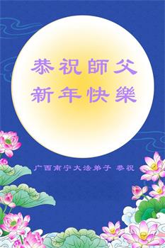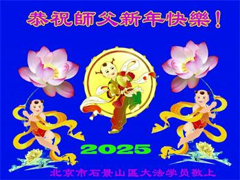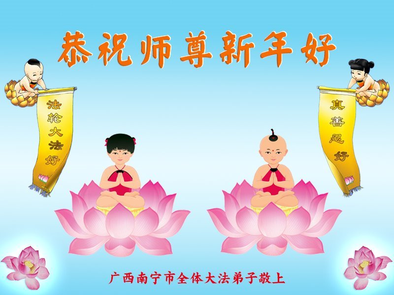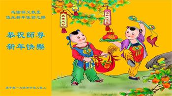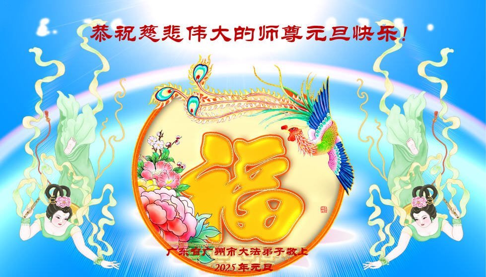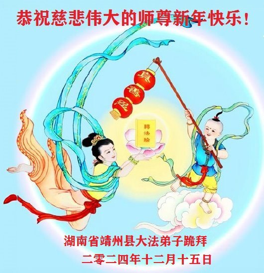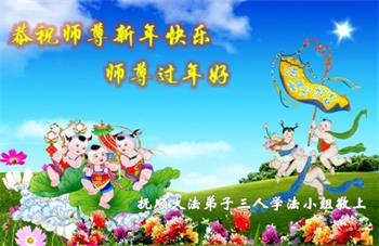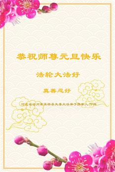 恭祝师父新年好!师尊您辛苦了!我是去年修炼法轮大法的新得法的大法弟子,法轮大法使我身心健康,家庭和睦,我整天乐呵呵的。我按照真善忍标准严格要求自己,我要做一个真修弟子,跟师尊回家!