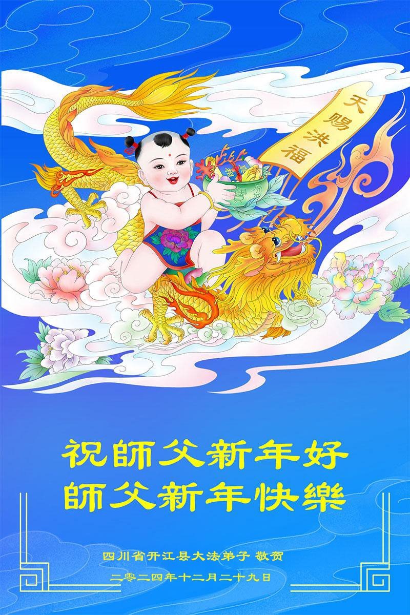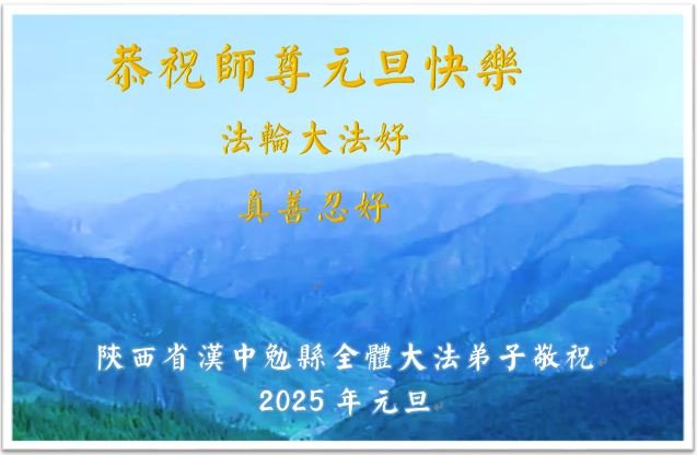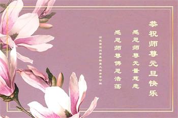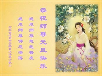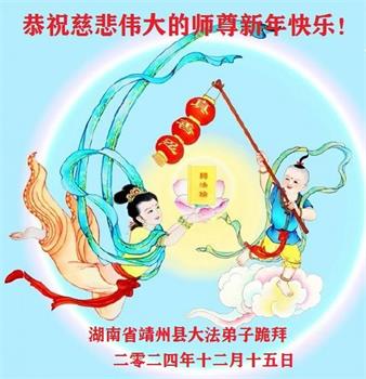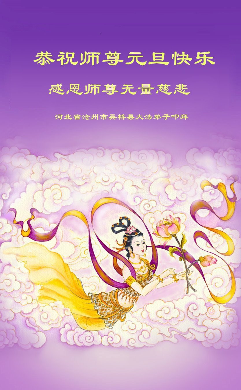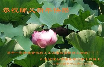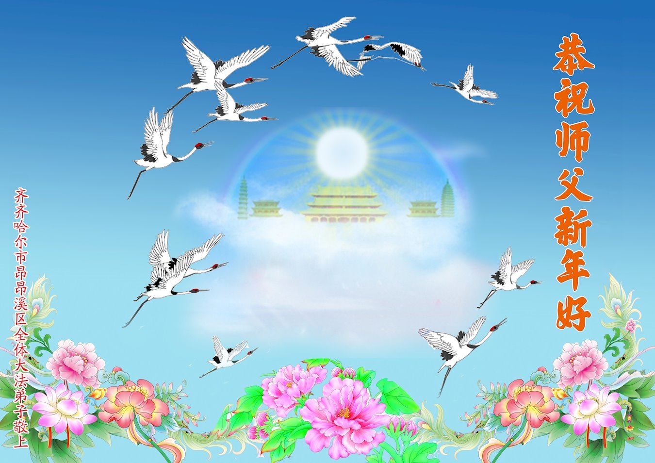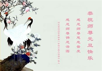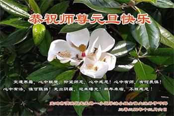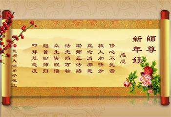 弟子们都表示要精進修炼,随师救度众生。以下是来自黑龙江、吉林、辽宁、山西、山东、河北、河南、安徽、江苏、浙江、福建、江西、湖北、湖南、广东、广西、海南、云南、贵州、四川、陕西、宁夏、青海、甘肃、新疆、内蒙古、北京、天津、上海、重庆等地大法弟子的部份贺词,恭祝伟大的师父新年好!